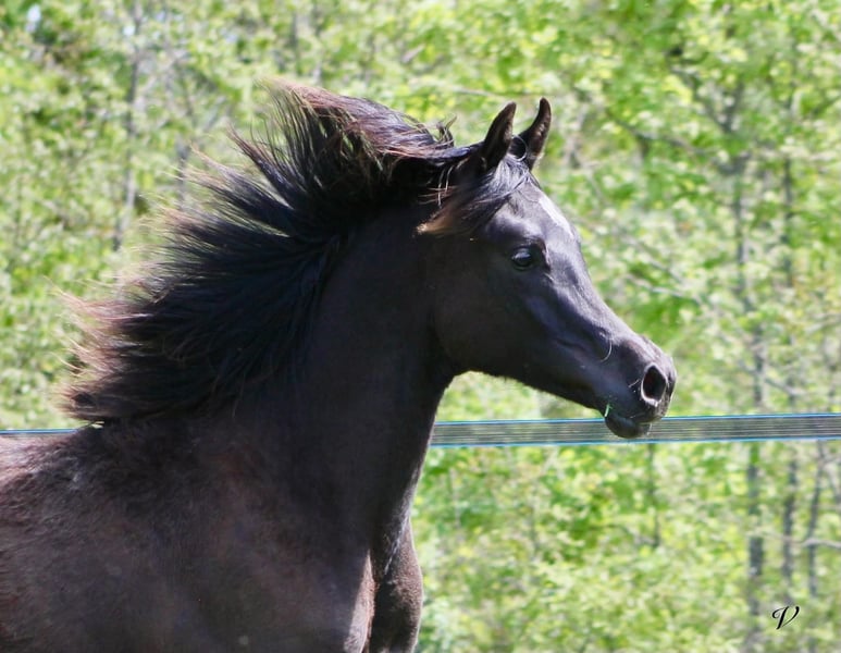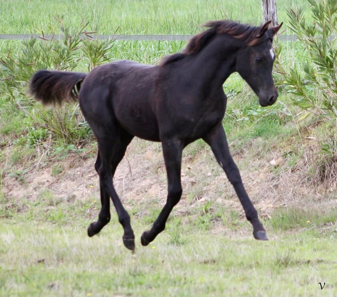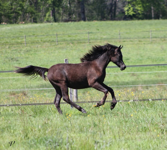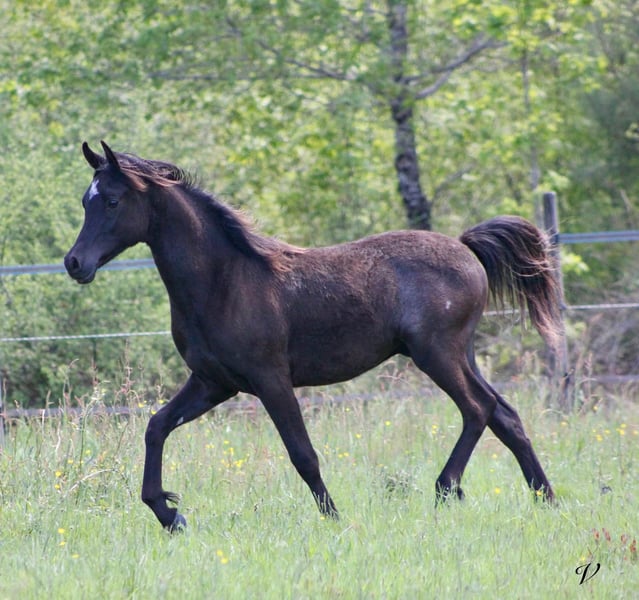 Baccarat Lys Royal Arabian purebred foal, black – born on May 27, 2025, in Dordogne. A stunning foal with a lot of presence, elegance, and a very attractive typy head. He already displays impressive movement, with good balance and elasticity. Sired by Black Shivas out of Shalimar (daughter of Magic Magnifique, World Champion), he benefits from an interesting pedigree combining conformation, temperament, and versatility. Baccarat is a foal that is very people-oriented, with an excellent character and easy to handle on a daily basis. 👉 Suitable for: * Quality leisure riding * Breeding value * Shows * Or as a future stallion Estimated height: 15.5 – 16.0 hh Photos and videos available upon request. Serious inquiries only.
