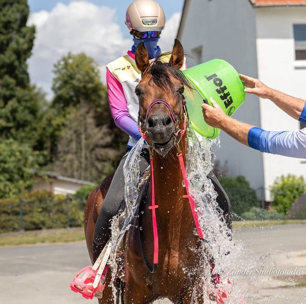 Our noble, powerful Arabian stallion is available to select mare owners. He combines type, stamina, willingness to perform, and an exceptionally balanced temperament – a true representative of the classic Arabian horse. 🏆 Breeding & Offspring: This stallion is registered with Gold status at ZSAA and already boasts prize-winning progeny. His foals impress with correctness, expression, and performance ability – traits he reliably passes on. 🏇 Performance & Temperament: He is successfully competing in endurance riding up to CEI** level, consistently demonstrating joy of performance, resilience, and nerves of steel: 🔹 Euston Park CEI* – 14th place, average speed 20.45 km/h 🔹 Euston Park CEI* – 16th place, average speed 19.85 km/h 🔹 Holzerode CEI* – 2nd place, Best Condition, average speed 17.16 km/h 🔹 Stuhr 100 km – 1st place 🔹 "Hell of Eisborn" – always victorious so far Numerous international placings and top performances up to 120 km. Additionally, he has completed several multi-day endurance rides of up to 200 km with me alone, with absolute ease – daily stages of 80 to 100 km, always well-behaved, sure-footed, and reliable – even as a stallion. Breeding conditions: 🔹 Natural cover available, tease test required 🔹 Fresh and frozen semen available by order only This stallion stands for performance, reliability, and a clear head – a sire that enriches both breeding and competitive riding.