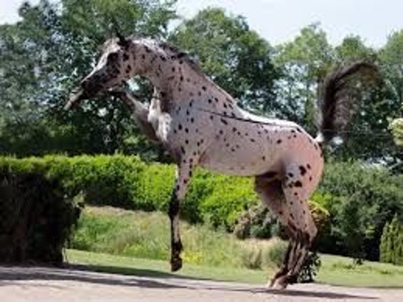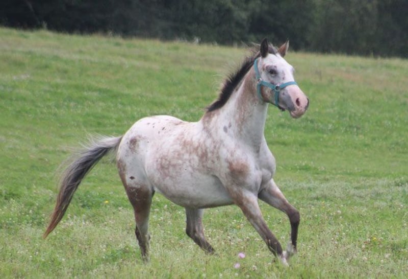 Partbred Arabian stallion with Appaloosa coat pattern and tiger-stripe markings