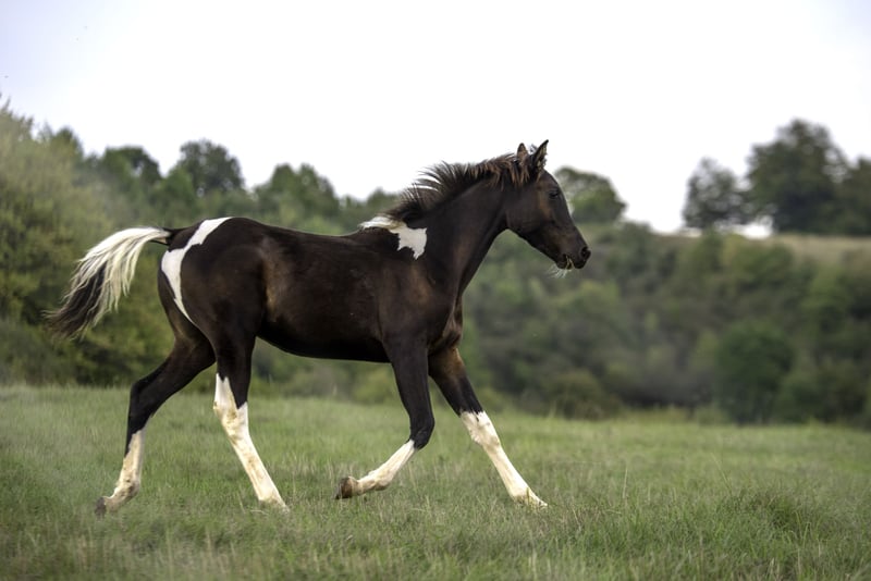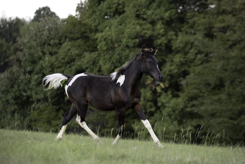 Looking for a new home 🥰 Black tobiano pintabian colt born 2/2025. Very tall and boh in his age - and with sweet character. Every day in contact with people and children, will be good sport horse or family horse, also potential in breeding in the future . Dam: KA Abundantia Mira (Sauda Zahra x Adalaa EL Bey) - pintabian Sire: Elchiero (purebred arabian succesful in Endurance races )
