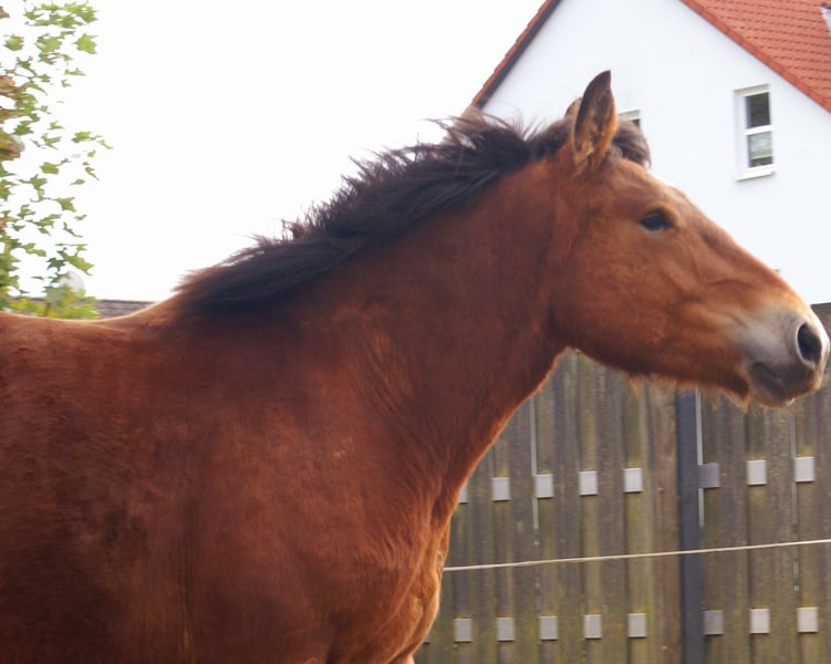 Ardennes mare with a heart in the right place, friendly, easy-going, affectionate, ready to start her training soon, full papers, loads well into the trailer and stands calmly alone.