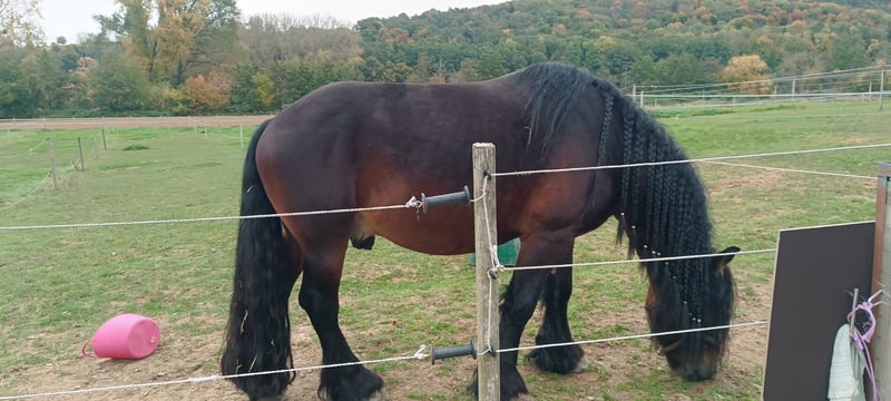 Cœur lourdement, mais dans le meilleur intérêt de notre cher cheval Otto (né en 2019), nous recherchons un nouveau foyer qui puisse lui offrir un environnement stimulant et respectueux de ses besoins — que ce soit pour une mise à disposition à long terme (2 à 4 ans) ou pour une vente. Otto est un magnifique et fiable étalon de trait froid, qui souhaite enfin reprendre le travail. L’idéal serait qu’il puisse être à la fois en liberté et monté, mais nous sommes également ouverts à des personnes expérimentées capables de lui offrir l’activité dont il a besoin. Compétences d’Otto : • Travail en liberté : Professionnellement mis en selle il y a environ deux ans. (Il doit être rééduqué, car il a fait une pause depuis.) Il marche calmement en longe double et simple. • Monté : Il connaît le poids du cavalier et porte régulièrement des enfants et des adultes en marche guidée. Son tempérament et son environnement : Otto est facile à manipuler. Il cohabite avec des juments dans un box et se montre calme avec elles dans l’aire d’exercice (tant qu’il n’y a pas de contact direct avec la peau). • La raison : Malheureusement, je manque de temps pour le faire évoluer selon son potentiel. Ma contribution en cas de mise à disposition : • Si vous optez pour une mise à disposition de 2 à 4 ans, je suis prêt à contribuer modestement aux frais courants chaque mois. Ce que je souhaite : • Avoir de l’expérience avec des chevaux mâles • Une gestion respectueuse de ses besoins (pâturage en groupe et contact social sont très importants pour moi). Il est essentiel pour nous que Otto trouve une famille bienveillante. C’est pourquoi nous demandons au moins deux visites personnelles pour faire connaissance. Un contrat de protection sera signé dans tous les cas. Le prix est négociable pour un bon foyer. Si vous pouvez offrir à Otto un foyer aimant et actif, nous serions ravis de recevoir votre message, dans lequel vous nous parlerez de vous, de votre environnement et de votre intérêt (mise à disposition ou achat).