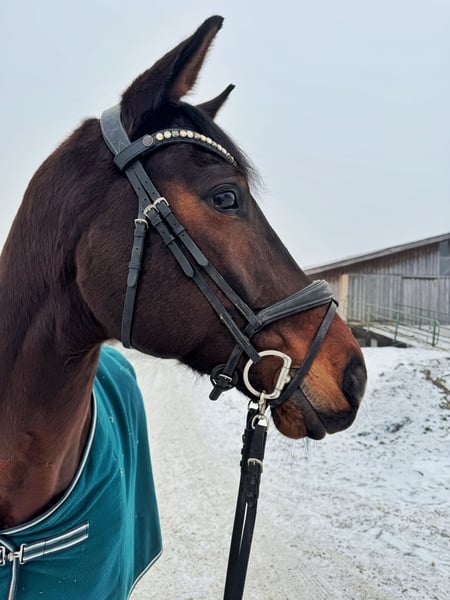 'Four Seasons', or 'Viero' as we call him, is a 10-year-old Austrian Warmblood gelding, approximately 172 cm at the withers, dark bay in color, sired by Vivaldi out of a Davignon II mare. Viero is a very well-behaved, affectionate gelding who loves cuddles and is completely herd-safe. In the field, he is very calm and well-behaved, both when hacking out and during walks. He is not spooky in the terrain, is familiar with road traffic, tractors, dogs, etc. He has three very good gaits. Under saddle, he is motivated, eager to learn, and has a solid basic attitude. He requires a rider who can provide him with security, as he is quite sensitive. In stressful situations, he can become quick-tempered, so a confident rider is necessary. However, he does not rear or buck! Therefore, suitable mainly for brave riders. In dressage, he is working at a solid M level, with S-level movements (such as flying changes) currently being developed. He is ridden several times a week. He is completely shoe- and loading-safe (regularly taken to external training sessions). He has not yet been shown at competitions, but this is planned for 2026. An older veterinary certificate is available without any findings. He is regularly vaccinated and dewormed. Price negotiable. Please contact us by phone at: +43 676 6419041 Videos and more photos gladly available via private message. Test rides possible at any time. Location: Upper Austria, Ried im Innkreis district.