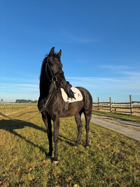 A special person is sought for a special horse After much consideration, we have made the difficult decision to sell our 3.5-year-old dressage-bred Austrian Warmblood gelding, Delano, into loving and appreciative hands. He is our first foal bred on our farm – directly from the breeder – making this step especially hard for us. Details: • Born May 2022 • Pedigree: Sir Bedo x Quel Plaisir x Zonik x Donnerschwee • Current height: approximately 16.1 hh • X-rays from late August 2025, including back, are available and can be viewed upon serious interest • Fully vaccinated • Teeth checked in August 2025 • Surgery insured without exclusions for over 3 years • Rated 8.0 at foal championship He is an incredibly personable, intelligent, and honest young horse. He always wants to please and enjoys any kind of activity. He is very well socialized and always in good spirits. He is accustomed to stable life, daily turnout, and overnight stabling. He grew up with another gelding and with our mares – never an issue. The herd was mixed, including retirees. He is very easygoing, even regarding feed. Training status: Due to a growth spurt, he is just now being broken in by us, and he is showing himself to be very well-behaved and honest for a young horse – a true model pupil. He already knows: • Lunging with rider in all three basic gaits • Walks (mostly alone) • Trailers, cars, tractors, dogs, children, etc. • Tows without any problems He has the right temperament to become an absolute reliable partner and lifelong friend. A personal meeting is preferred; no endless photos and videos will be sent. Just come by and fall in love! Location: Sallingberg, Lower Austria – 3525, Austria