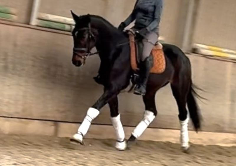 Beautiful ÖWB gelding truly lives up to his name as a charming little cavalier! He is currently 4 years old and consistently shines and gleams with enthusiasm in every task he is given. He has already achieved placements in show jumping, enjoys hacking out alone or in a group, and his true strength lies in dressage. Thanks to his exceptional correct conformation, he demonstrates three excellent basic gaits that are soft to sit and achieved completely without tension. He has always been handled with one hand, has never experienced any negative incidents, has never been ill, and was health-checked before starting his training in December of last year. He is currently located in Vienna’s Prater and can be viewed at any time by appointment.