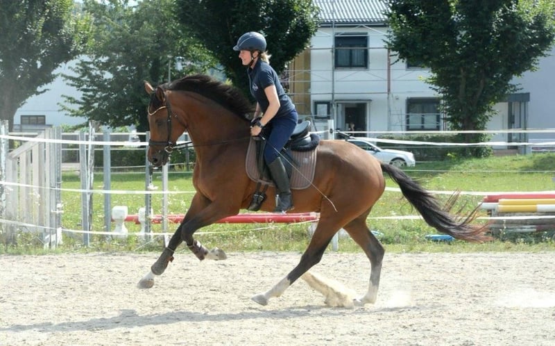 Dixiland (Dreamboy x Florencio) è un cavallo castrato di 7 anni alto 172 cm, che sa subito come farsi apprezzare. Con il suo modo super simpatico di interagire, sia in maneggio che sotto sella, rende ogni giorno un piacere. È dotato di un buon “Go”, che è sempre ben gestibile. Anche durante le passeggiate e nei piccoli salti, così come davanti alla carrozza, vuole sempre fare tutto nel modo giusto. Un vero “cavallo da divertimento” per il cavaliere esperto nel tempo libero. A causa di un referto come cavallo da svago, non è in vendita per lo sport! Pertanto, il prezzo è ben al di sotto del valore. Per ulteriori informazioni, contattateci volentieri tramite messaggio privato o telefonicamente.