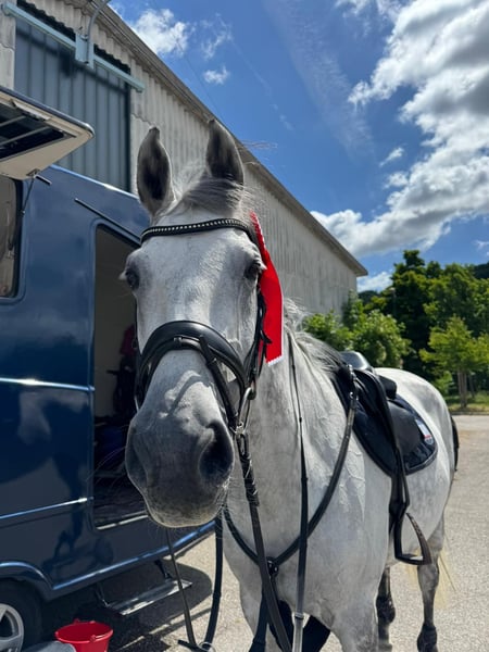 Cette jument de 10 ans a un tempérament un peu particulier et est parfois un peu têtue en main, mais reste toujours parfaitement maniable. Elle a besoin d'une personne qui lui donne des lignes claires, auquel cas elle se montre fiable et coopérative. Sous la selle, elle possède l'énergie nécessaire, tout en restant toujours contrôlable. En raison de sa sensibilité, elle réagit immédiatement aux aides de jambes et de voix – elle n’est donc pas adaptée aux débutants, mais plutôt à un cavalier sensible et expérimenté. Elle brille par ses excellentes allures de base, ce qui la rend également intéressante pour la dressage. En saut d’obstacles, elle a de l’expérience jusqu’à 135 cm, avec des classements nationaux jusqu’à 130 cm et des victoires internationales jusqu’à 125 cm. Gentille avec le maréchal-ferrant, lors du chargement, des sorties en extérieur, etc. Propriétaire depuis 7 ans, toujours en bonne santé et sans blessures. En raison d’un accident et de l’absence prolongée de la cavalière, elle ne peut être confiée qu’aux meilleures mains ! Priorité à la qualité, pas au prix ! PK 20 000 – 25 000 €