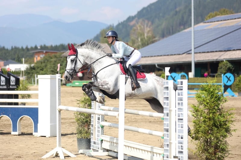 Ta 10-letnia klacz jest nieco specyficzna i uciążliwa w obsłudze, ale zawsze pozostaje absolutnie posłuszna. Potrzebuje osoby, która wyznacza jasne granice, wtedy jest niezawodna i chętna do współpracy. Pod siodłem ma potrzebne zacięcie, ale jest zawsze kontrolowalna. Ze względu na swoją wrażliwość reaguje natychmiast na sygnały od nóg i głosu – dlatego nie jest odpowiednia dla początkujących, lecz dla wyczulonego jeźdźca. Cechuje ją świetna podstawowa chód, co czyni ją interesującą również w dyscyplinie ujeżdżenia. Ma doświadczenie w skokach do 135 cm, w kraju plasuje się do 130 cm, a na arenie międzynarodowej wygrywa do 125 cm. Przebiegła w stajni, spokojna przy czyszczeniu, załadunku, wyjazdach itp. W posiadaniu od 7 lat, zawsze zdrowa i bez kontuzji. Ze względu na wypadek i związany z nim dłuższy czas nieobecności jeźdźca, polecamy tylko w najlepsze ręce! Priorytetem jest jakość, nie cena! PK 20-25 tys. €