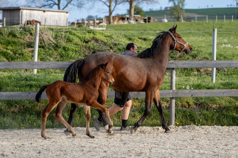 Moarhof's Schwedenbombe Mare *21.3.25 Sire: Zinedream, 1.60 successful in World Cup show jumping Dam: Sophie Girl (Vivant van de Heffinck x Clover Brigade), *2021, is her first foal 4 siblings of the grandmother are internationally successful: Loughnavatta Indigo, 1.60 show jumping Loughnavatta Ash 1.45 GRC Paris 1.45 Catch me Cooley CCI3*-S, 1.30 show jumping Our sweet Schwedenbombe is growing up with us in the herd alongside other foals and older mares. We have a small but fine breeding program, and our foals get to experience quite a lot. We wish for a home where she can grow up as horse-friendly as possible and where she will also be supported later on. https://www.horsetelex.de/horses/pedigree/2670692/moarhof-s-schwedenbombe Photos: (c) Klara Mayr