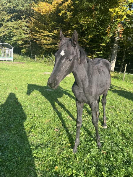 Verkaufe österreichisches Warmblut – elegante Rappstute Zum Verkauf steht eine beeindruckende österreichische Warmblut-Stute, geboren im Mai 2025. Sie wird eine vielversprechende Dressurpartnerin und überzeugte am Landeschampionat mit einer Bewegungsnote von 9,5. Diese wunderschöne Rappstute ist ideal für ambitionierte Reiter, die Wert auf Qualität und Charakter legen. Sie ist aufgeschlossen & freundlich, kennt das Fohlen ABC und zeigt bereits erste vielversprechende Dressuransätze. Bei Interesse stehe ich gerne für weitere Informationen und eine Besichtigung zur Verfügung. Kann gerne zur weiteren (sehr artgerechten) Aufzucht bleiben! Kontaktieren Sie mich, um mehr über dieses außergewöhnliche Pferd zu erfahren!