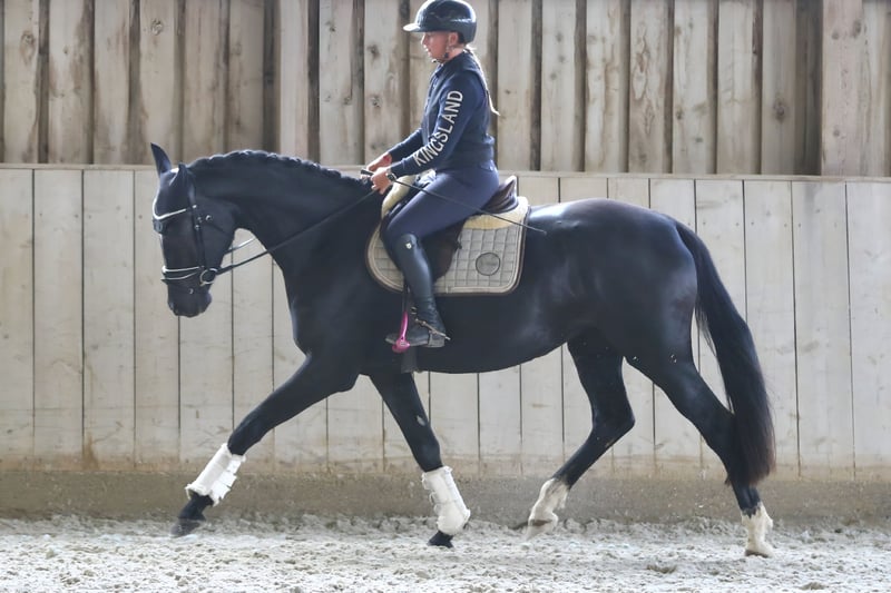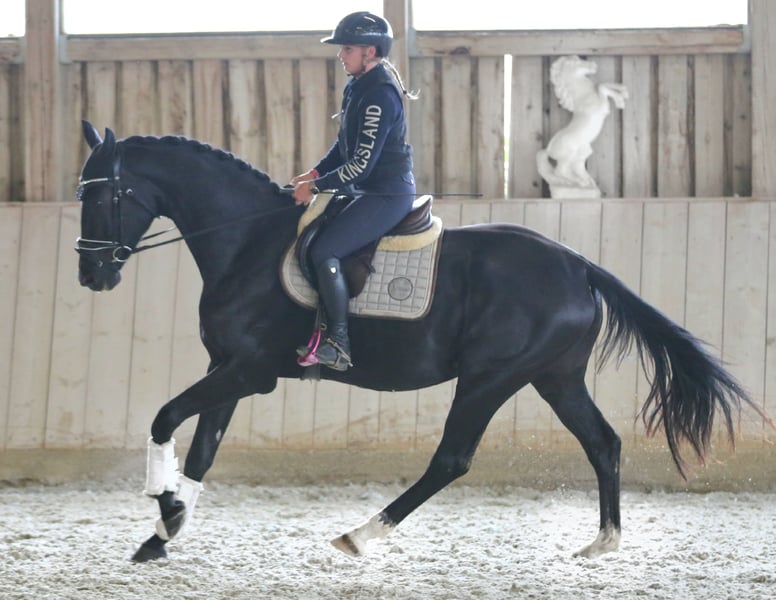 Figlia straordinaria di Jameson RS2 (S vincitore) La cavalla è già montata. Il suo fratello completo Jamey è attualmente campione del Bundeschampionate per cavalli da dressage di 4-5 anni. Molto buona sotto la sella, con un morso molto gentile e un buon equilibrio in sella. Madre Donna Leon, di sangue Don Index - Ampere - Don Schufro - Lauries Crusador xx - Absatz Linea materna della famiglia Loranda, diretta discendente del cavallo di fama mondiale WELTMEYER, dell'allevamento Hermann Meyer. Donna Leon è stata la cavalla vincitrice alla mostra delle puledre di Hannover nel 2017 a Badbergen, rendendola anche molto interessante dal punto di vista genetico. Su richiesta, può essere ancora fecondata qui. Le radiografie attuali possono essere inviate via email. Solo telefono o WhatsApp, grazie.