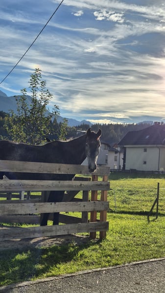 For sale is my lovely Austrian Warmblood mare, Freya (Diamant). She will likely shed a bit more coat as the season progresses. This little mare is nearly 4 years old and has spent her life in a herd on mountain pastures and meadows. She is currently approximately 16.1 hands tall and has a very sweet temperament. Due to an accident, I was unable to continue her training, so she is not yet backed but is familiar with the bridle. Freya is a truly well-behaved, friendly mare, low in the herd hierarchy, and very curious. She still needs a calm and confident handler to show her the world and give her time to settle. She is quick to learn and eager to cooperate. This is not a desperate sale and she will only be handed over to the best possible new owner! After a personal introduction between horse and handler, we can discuss further details. Please feel free to contact me via WhatsApp or message at 0650/5131579