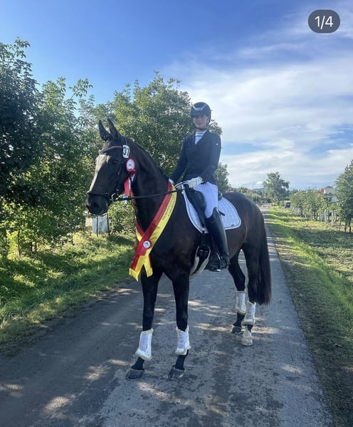 Yegua mare negra con un gran potencial y una genealogía excepcional Se ofrece en venta una impresionante y elegante yegua mare de color negro con castaño, nacida en 2019, con una línea de sangre sobresaliente: padre De Niro Gold, abuelo materno Don Romantic. Esta combinación combina genética de doma clásica probada con una alta disposición al rendimiento y buen carácter. La yegua está, por supuesto, vacunada regularmente, desparasitizada y mineralizada de manera óptima, y siempre ha recibido un cuidado excelente. Desde joven, ha demostrado su talento: - A los 3 años, subcampeona de Burgenland en la inscripción de yeguas - A los 4 años, reserva campeona en la categoría de caballos de doma en Burgenland Posee una base sólida en su entrenamiento y muestra, especialmente en el galope, una excelente disposición para la recolección. Ya se le han probado las primeras lecciones avanzadas, lo que revela su gran talento para la doma. También ha demostrado su valía en la cría: La yegua ha dado a luz ya a dos potros de alta calidad y sanos, y destaca por su fiabilidad como yegua de cría. Actualmente, lleva un potro en marcha y, por lo tanto, no ha estado en entrenamiento en los últimos tiempos. Posibilidades de uso: - Potencialmente un futuro caballo de deporte prometedor - Muy interesante para la cría En caso de compra con fines de reproducción, sería posible una cobertura inmediata. La venta se realiza por mucho menos del valor de mercado – más detalles se pueden proporcionar por teléfono. Disponibilidad: a partir de julio/agosto Si está interesado y desea más información, no dude en contactarnos. 0043 6602752742