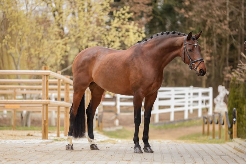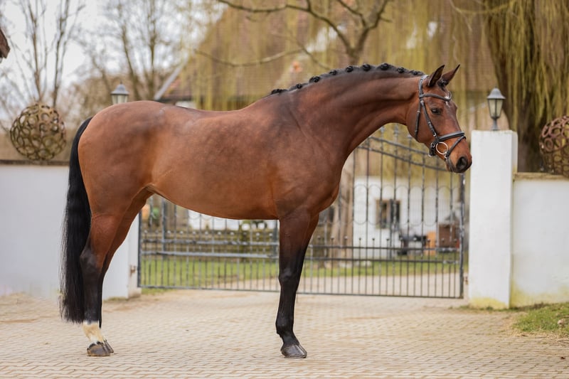 Participant of the Federal Championship with outstanding gaits and achievements up to S-level, seeking her soulmate. This beautiful, expressive 8-year-old mare boasts excellent movement quality and a temperament and rideability that make every ride enjoyable! Her dynamic movement combined with her absolutely sweet and friendly nature wins everyone's heart. Her wonderful character is complemented by numerous successes. In 2021, she placed among the top five at the Federal Young Mare Show for 3-year-olds and at the Federal Championship for 3-year-old riding horses. She is already successful and highly placed in dressage competitions up to S-level with high scores. Additionally, she is herd-friendly, shoe- and loading-trainable. An absolute heart horse, eager to meet her soulmate and find a loving forever home. A dressage horse for the highest demands and ambitions. Visit our Instagram page @unicornhorsesofficial for behind-the-scenes insights and more videos of D’Vika. For inquiries, please contact us at: +49 176 20174499