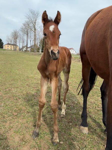 Be Glorious – Rittigkeit und Bewegung vorprogrammiert, Stamm der Aricia Zum Verkauf steht ein langbeiniges und vielversprechendes AWÖ Stutfohlen vom 9.4.2026. Die Braune Stute beeindruckt nicht nur mit ihrem korrekten Fundament, stabilen Gelenken, sondern auch mit ihren elastischen Bewegungen und der hervorragenden Abstammung. Sie ist zugewandt, lernwillig, aufmerksam und hat ein ausgeglichenes, angenehmes Temperament, was sie zu einer idealen vielseitigen Partnerin als auch für die Zucht macht. Geschätztes Endmaß +-1,70m Die Mutter Bella Belissima hat einen unfassbar ausgeglichen und sehr Menschenbezogen Charakter. Ihr erstes Fohlen von Zarenball war direkt zur Hannoveraner Online Auktion zugelassen und wurde versteigert. Bei der Abgabe kennt sie das Fohlen ABC, stand schon mehrmals am Hänger, kennt große Maschinen wie Traktoren, Kinder, Hunde usw. Sie wächst artgerecht in der Gruppe mit gleichaltrigen Fohlen auf. Wir freuen uns darauf diesen besonderen Nachwuchs aus unsererprivaten kleinen Eigenzucht persönlich vorzustellen. Vater Grey Tonic ist aktuell in aller Munde. Er war Preisspitze der PS-Youngster-Auktion und begeisterte als gefeierter Prämienhengst und Publikumsliebling bei seiner Körung. 2025 bestätigte er alle in ihn gesetzten Erwartungen und gewann mit Traumnoten bis 9,20 seinen Kurzveranlagungstest in Verden. Er besticht mit erhabenem Seitenbild im deutlichen Hengsttyp stehend, mit großen Partien sowie seiner überragenden Bewegungsqualität bei maximaler Schulterfreiheit und Bergauftendenz. Der großzügige Galopp verdient gesondert hervorgehoben zu werden und erinnert wie kaum ein Zweiter an seinen über allem präsenten Muttervater Secret. Der Vater Grey Flanell überzeugte als direkter Sohn des Lordsiegel bewahrers Gribaldi vom Fleck weg in allen Belangen. Er wurde unangefochtener Hauptprämiensieger zu Oldenburg, war bester 4-jähriger im Pavo-Cup, gewann nationale Grand-Prix-Prüfungen und nahm erfolgreich an der Weltcup-Etappe teil. Über zehn gekörte Söhne stehen aus seinem kurzen züchterischen Wirken zu Buche und eine enorm hohe Dichte an bereits Grand Prix erfolgreichen Dressurpferden. Die Mutter Secret Zone PS stellte 2025 den Prämienhengst Epic Zone PS (v. Escanto PS) und führt über ihren Vater Secret väterlicherseits das Blut des Triple-Weltmeisters Sezuan. Secret war dreijährig HLP-Sieger und Vize-Bundeschampion, fünfjährig Vize-Weltmeister und sechsjährig Dressurpferdebundeschampion. Seine Nachkommen wurden Preisspitzen sämtlicher Auktionen, Bundeschampions, Siegerstuten, Prämienhengste und schufen ihrem Vater einen Weltruf als Reitpferdemacher erster Güte. Die dann folgende Großmutter Zantana RS2 OLD wurde 4-jährig über die P.S.I.-Auktion für 955.000 Euro an in die Niederlandeverkauft und verbucht dort bereits Siege und Platzierungen bis zum Grand Prix-Niveau. Ganz nebenbei ist Zantana bereits Mutter von mehreren gekörten Söhnen. Die Urgroßmutter Sondra von Sir Donnerhall wurde 2025 Stute des Jahres in Oldenburg. Sie brachte den gekörten Olympia-Sechsten Glock’s Total U.S, den gekörten und international bis Inter I siegreichen Dante U.S., sowie die gekörten Hengste Mister U.S., Lamborghini U.S. und den international Grand Prix erfolgreichen Zaid. Grey Tonic entstammt einem seit Jahrzehnten im Hause Schockemöhle gepflegten Stutenstamm, der in seiner Dichte bei der Gestellung von Grand Prix - Pferden sowie einflussreichen Hengsten der Neuzeit wohl kaum zu übertreffen ist. Muttervater Belissimo MNRW war Rekord-Hengstprüfungssieger, Bundeschampion, Finalist bei der Weltmeisterschaft der Dressurpferde. 2011 startete Belissmo direkt auf S-Niveau und kam zu mehreren Siegen und Platzierungen im internationalen Grand Prix-Sport. Er absolvierte die Olympiaqualifikation 2012 unter den drei besten Pferden im australischen Team. Als Reitpferdemacher ist Belissimo M absolut eine Klasse für sich. Mehr als 60, nur in Deutschland, gekörten Hengsten! Über 120 Staatsprämienstuten sowie Championatssieger, HLP-Sieger, und viele hoch bezahlte Auktionspferde weltweit zeugen von Belissimo Ms Vererbungssicherheit. In der FN-Zuchtwertschätzung hält Belissimo Ms ist seit Jahren unter den Top 1 % der Vererber sowie auch 3 seiner Söhne! Fidertanz (Grand Prix erfolgreich) steht aktuell auf Platz zwölf der weltbesten Dressurvererber - laut WBFSH-Ranking. 65 gekörte Söhne u.a. Franziskus FRH, Fiderdance, Tannenhof’s Fahrenheit und Elitehengst Foundation. Auch in der Vielseitigkeit sind Fidertanz Nachkommen erfolgreich: Olympiateilnehmerin2021, Flandia, sowie die beiden Teilnehmer der WM 2022, Fifty Fifty und Fallulah. Bellas Bruder ist bereits bis in die schwere Klasse siegreich, die Mutter ist Staatsprämienanwärterin. Die dritte Mutter Sandrin brachte u.a. zwei bis Inter1 bzw. Grand Prix platzierte Söhne. Aus dem Hannoveraner Stamm der Aricia kommen der gekörte Bundeschampion Finest Selection OLD ( bis PSG/Inter I erfolgreich), der Prämienhengst Value (v. Valverde) uvm. Sporterfolgreich waren u.a.: Le Chevalier (DRE: Grand Prix), Boney M. (DRE: Grand Prix, Dressur Weltcup Qualif-Kür der FEI 2000); Diadem (SPR: M); Linus (DRE:L, Europameisterschaft der Vielseitigkeitsreiter Jun. 2007, Deutsche Meisterschaft der Vielseitigkeitsreiter Jun 2007) uvm….