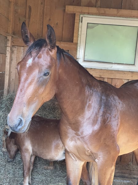 **Sales Advertisement: Young Austrian Warmblood** For sale is a promising stallion from the year 2023. **Breed:** Austrian Warmblood **Color:** Brown **Height:** currently approx. 165 cm **Suitability:** Show jumping This talented young stallion impresses with his movements and balanced temperament. He is well-suited for show jumping and already shows promising potential in his training. His friendly nature makes him an ideal partner for ambitious riders who are looking for a promising young talent. If you are interested or need further information, please feel free to contact me. Viewings are possible by appointment. We look forward to your message!