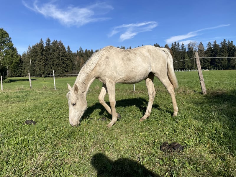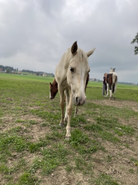 Ein vielversprechender Charakter mit Sonderfarbe. "N'Sync", auch "Naseweis" genannt, ist ein junger Palomino mit tollem Wesen. Er ist freundlich, mutig, gelassen, neugierig, nicht ängstlich und dem Menschen zugewandt. Das Fohlen-ABC und alles, was danach noch gut auf eine spätere Karriere als Reitferd vorbereitet, hat er mit Bravour absolviert. Führen, spazieren, anbinden, waschen, Hufe geben, Hufschmied usw. das ist für ihn alles bekannt und unproblematisch. N'Sync ist korrekt gebaut, fit und bewegt sich gut in allen Gangarten. Seine Endgröße schätze wir auf etwa 1,64, er wird kein Riese. Als Jährling war einen Sommer lang auf der Alm in einer Warmblutherde, dort hat er die besten Kräuter gefressen, seine Sehnen und Gelenke gestärkt und sich sozial in ein völlig neues Umfeld integriert. Als 2,5-Jähriger darf er sich jetzt in einer kleinen Jungs-Herde noch weiterentwickeln. Seine Eltern haben beide im Sport Leistungen gezeigt und sich im Umgang charakterlich besonders hervorgetan. Mit dieser Kombination haben wir ganz bewusst ein verlässliches, ansprechendes Pferd gezüchtet, das Leistung bringen kann, aber auch für absolute Amateuere viel Freude bringt. Seine Mutter Karmen ist ein Vielseitgkeitspferd, am Turnier erfahren und im Alltag absolut verlässlich. Sie ist ein Traumpferd - genügend Go und Temperament, aber einfach immer handelbar und eine echte Lebensversicherung. Diese Grundcoolness hat sie an ihren Sohn weitergegeben. Sein Vater Nikkei xx war ein Rennpferd, über mehrere Saisonen (Jahre) erfolgreich auf der Bahn. Seit drei Jahren ist er für die Warmblutzucht gekört und als Deckhengst aufgestellt. N'Sync hat einen besonderen, sehr alten Stammbaum. Sein Pedigree ist über Jahrhunderte rückverfolgbar. Die Mutterlinie geht aus den Monarchiepferden hervor. Adelige, robuste, treue Pferde, für deren Zucht der "will to please", Gesundheit und Härte ausschlaggebend waren. Das ungarische Staatsgestüt Somogysard aus ihrer Ahnenreihe hat sich mit seinen guten vielseitigen Pferden einen Namen gemacht. Sein Vater Nikkei stammt von Nicella ab, deren Vater Lando wiederum ein top Vererber in der Warmblutzucht ist. Qualität in Farbe: Mit diesen Elternteilen weicht N'Sync trotz der hohen Qualität von allen populären Linien der Farbzucht ab und wird damit zur Rarität. Wir wünschen uns für ihn ein gutes Zuhause bei jemanden, der mit diesem Jungpferd wachsen möchte. Für ihn stehen alle Sparten offen - ob im Sport oder als Partner für die Freizeit.