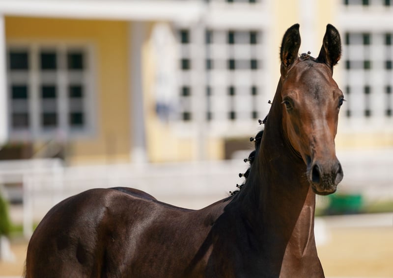 beautifully presented stallion prospect in a dark jacket with outstanding basic gaits qualified for the Bundeschampionat very correct with a great face absolutely sociable knows foal ABC, farrier, hanger etc. More details in person!