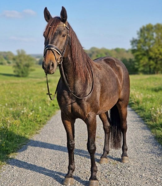 Ein richtiges Herzenspferd unsere Mercedes! Bist du auf der Suche nach einem echten „Spaßmobil“, das mit dir durch dick und dünn geht? Unsere wunderschöne Mercedes, (160 cm große Azteka-Mix-Stute) vereint Erfahrung mit einem absolut ehrlichen Charakter. Sie ist die perfekte Mischung für Reiter, die eine mutige Partnerin suchen, die weder faul noch sehr schreckhaft ist. Was sie besonders auszeichnet, ist ihre feine Ausbildung: Sie hört perfekt auf Stimmkommandos und ist im Gelände wirklich cool bei neuen Sachen! Quer Feld ein? Ja ok! Treppen Hochzeiten? Auch kein Problem! Steilen Abhang runter? Machen wir! Halt ein richtiges *Spaß mobil!* Egal ob ein mutiger Galopp über die Stoppelfelder oder ein entspannter Ritt am langen Zügel – Mercedes ist immer artig, unerschrocken und für jeden Unfug zu haben. Ihre sensible Seite zeigt sich lediglich bei Männern, besonders wenn diese Stöcke in der Hand halten – hier braucht sie einen Moment Vertrauen, bleibt dabei aber stets händelbar. Sie ist kerngesund, absolut verträglich mit anderen Pferden und einfach ein Schatz im täglichen Umgang. Wenn du eine unkomplizierte, kräftige Partnerin suchst, die bereit für gemeinsame Abenteuer ist, freut sie sich auf deinen Besuch! Alle Angaben ohne Gewähr Keine Verfügung keine Raten // Transport überall hin möglich! Probereiten mo-fr 25€ Sa-so/feiertags 30€ Vorführen (immer) 10€ Meldet euch gerne! 01703718888