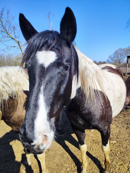 Chocolate – 5-year-old roan mare with a striking Azteke appearance, clever and alert