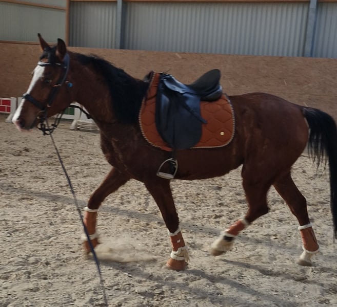 Talentoso poni de 4 años con mucho potencial Se ofrece a la venta un prometedor **pony de 4 años**, que ya ha sido montado con suavidad y muestra una gran disposición para aprender. Destaca por su carácter amistoso, sus buenas habilidades básicas y su gran potencial para seguir desarrollándose en la doma. El bonito pony de color castaño claro con 4 patas blancas es tranquilo en su manejo, sociable y se muestra motivado y atento bajo la silla. Debido a su edad, todavía está en las primeras etapas de su entrenamiento y es ideal para jinetes que desean seguir promoviendo a un poni joven. **Datos:** * Sexo: Gelding * Edad: 4 años * Altura: aproximadamente 1,45 m * Color: castaño claro * Nivel de entrenamiento: montado Ya conoce el trabajo en la pista de doma y se muestra equilibrado y cooperativo en ella. Con más apoyo y entrenamiento, será interesante tanto para el ocio como para la competición. El pony se entregará únicamente a **manos responsables y que fomenten su desarrollo**. 📍 Ubicación: 54636 💰 Precio: 6900 € Si está interesado, no dude en contactarnos. Estaremos encantados de proporcionar más información, fotos o vídeos.