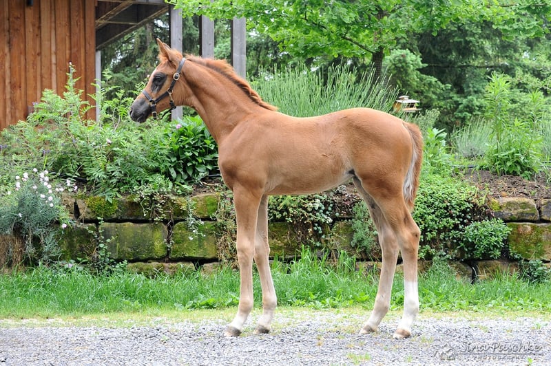 Qualifiziert für das Deutsche Fohlenchampionat in Lienen mit Traumnoten von durchschn. über 9 und mit 0,016 Punkten zum Zweitplatzierten. *Dunkelfuchs *WFFS frei durch die Eltern https://youtu.be/4xOPYyg27h8 Bildschönes, bewegungsstarkes Dunkelfuchs-Stutfohlen von ESCAMILLO aus der Maléa vom Tannenberg v. Bohemian OLD. Sie bezaubert uns jeden Tag durch ihre Ausstrahlung und Bewegungskraft. Sie hat einen hervorragendem Körperbau, ist korrekt und mit einem super Charakter ausgestattet. Mutter Maléa ist als Staatsprämienanwärterin ausgezeichnet und war 2023 Endringstute auf der Landesstutenschau. Großmutter, Staatsprämienstute Musica d'amour, war zweite Reservesiegerin der Leistungsprüfung mit 8,09 und Dressurpferde A siegreich, sowie Dressurpferde L hochplatziert. Vater Escamillo beeindruckt sowohl im Viereck als auch in seiner Vererbungsleistung. Er war Silber oder Bronze Medalliensieger bei der WM der jungen Dressurpferde und Finalist des Nürnberger Burgpokals. Aktuell ist er seriensiegreich in Inter II und auf dem besten Weg zu den ganz großen Championaten. Er hat bereits mehr als 40 gekörte Söhne und seine Nachkommen sind zahlreich im Sport erfolgreich. Das Stutfohlen stammt aus einem der besten Stutenstämme des Brandenburgischen Haupt- und Landgestüt Neustadt (Dosse). Die Urgroßmutter Moulin Rouge v. Quaterback stammt aus der Gestütszucht und hat einen gekörten Vollbruder. Der Stamm zeichnet sich durch eine hohe Veranlagungsvielseitigkeit aus - Sowohl in der Dressur als auch im Springen und Fahren gibt es zahlreiche, in der schweren Klasse erfolgreichen Sportpferde. Kontakt: Sina Paschke +491714885381 Standort bei Stuttgart (BW, Deutschland) ✨✨️ *Dunkelfuchs *WFFS frei durch die Eltern Bildschönes, bewegungsstarkes Dunkelfuchs-Stutfohlen von ESCAMILLO aus der Maléa vom Tannenberg v. Bohemian OLD. Sie bezaubert uns jeden Tag durch ihre Ausstrahlung und Bewegungskraft. Sie hat einen hervorragendem Körperbau, ist korrekt und mit einem super Charakter ausgestattet. Mutter Maléa ist als Staatsprämienanwärterin ausgezeichnet und war 2023 Endringstute auf der Landesstutenschau. Großmutter, Staatsprämienstute Musica d'amour, war zweite Reservesiegerin der Leistungsprüfung mit 8,09 und Dressurpferde A siegreich, sowie Dressurpferde L hochplatziert. Vater Escamillo beeindruckt sowohl im Viereck als auch in seiner Vererbungsleistung. Er war Silber oder Bronze Medalliensieger bei der WM der jungen Dressurpferde und Finalist des Nürnberger Burgpokals. Aktuell ist er seriensiegreich in Inter II und auf dem besten Weg zu den ganz großen Championaten. Er hat bereits mehr als 40 gekörte Söhne und seine Nachkommen sind zahlreich im Sport erfolgreich. Das Stutfohlen stammt aus einem der besten Stutenstämme des Brandenburgischen Haupt- und Landgestüt Neustadt (Dosse). Die Urgroßmutter Moulin Rouge v. Quaterback stammt aus der Gestütszucht und hat einen gekörten Vollbruder. Der Stamm zeichnet sich durch eine hohe Veranlagungsvielseitigkeit aus - Sowohl in der Dressur als auch im Springen und Fahren gibt es zahlreiche, in der schweren Klasse erfolgreichen Sportpferde. Kontakt: Sina Paschke +491714885381 Standort bei Stuttgart (BW, Deutschland)