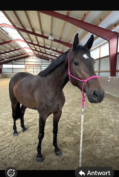 Zum Verkauf steht eine 4-jährige Baden-Württemberger Stute mit vielversprechender Zukunft im Springsport und vielseitiger Veranlagung. Die Stute stammt ab von Hickstead White x Claudino und ist derzeit ca. 1,70 m groß. Sie ist altersentsprechend gut entwickelt und befindet sich in einer soliden Ausbildung. Sie hat bereits Erfahrungen im Springen gesammelt und ist außerdem schon eine Geländeprüfung gegangen, die sie ruhig und motiviert gemeistert hat. Besonders hervorzuheben ist ihr sehr gelassener und unerschrockener Charakter. Neue Situationen bringen sie nicht aus der Ruhe, was sie zu einem echten Pferd fürs Leben macht. Im täglichen Umgang zeigt sie sich brav, ausgeglichen und unkompliziert. Damit ist sie sowohl für ambitionierte Reiter als auch für langfristige Partnerschaften bestens geeignet. 📌 Kurzinfos auf einen Blick: Alter: 4 Jahre Geschlecht: Stute Rasse: Baden-Württemberger Stockmaß: ca. 1,70 m Abstammung: Hickstead White x Claudino Charakter: sehr gelassen, unerschrocken, ehrlich Einsatzbereich: Springen / Gelände Ausbildungsstand: altersgerecht, bereits Geländeerfahrung Weitere Informationen, Bilder oder Videos gerne auf Anfrage.