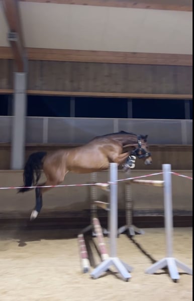 Sehr talentierte Baden-Württemberger Stute, Jahrgang 2018, aus der Abstammung des Hengstes Ciacomo. Diese Linie ist bekannt für Vermögen, Technik und Leistungsbereitschaft am Sprung – Eigenschaften, die sich bei dieser Stute klar widerspiegeln. • Beim Freispringen zeigt sie bereits ein beeindruckendes Vermögen bis 1,50 m, vereint mit einem sehr guten Sprungablauf und viel Übersicht. Aktuell befindet sie sich auf einem soliden A-Niveau im Springen, mit klarem Potenzial für die schwere Klasse. Dressurmäßig ist sie auf gutem A-Niveau gearbeitet, und steht sehr fein an den Hilfen. Auch Geländespringen ist ihr bekannt, hier zeigt sie sich sehr ehrgeizig, mutig und befindet sich in ihrem Element. • Die Stute ist vielseitig gearbeitet und kennt: -Doppellonge -Longe -Handarbeit -tensegrales Faszientraining -Spaziergänge -Freiarbeit -Freispringen • Im Umgang zeigt sie sich zuverlässig: -lässt sich sowohl auf Hänger, als auch Transporter problemlos verladen -brav beim Schmied, Tierarzt und Osteopathen -Zähne regelmäßig gemacht -befundfreie AKU aus 2024 liegt vor -regelmäßig entwurmt • Charakterlich ist sie eine starke Persönlichkeit: Sie benötigt einen durchsetzungsfähigen und erfahrenen Reiter, der ihr Sicherheit gibt. Hat man sie jedoch auf seiner Seite, zeigt sie sich äußerst leistungsbereit, rittig und loyal. Sie ist nicht für Anfänger oder Wiedereinsteiger geeignet. • Aktuell steht sie in Boxenhaltung mit täglichem Auslauf in einer großen Stutenherde, Einzelkoppel ist ihr auch problemlos bekannt. Kann nicht im Offenstall stehen. • Auch für die Zucht ist diese Stute auf Grund ihrer hervorragenden Abstammung sehr interessant. • Eine spannende Stute für ambitionierte Reiter, die ein Pferd mit viel Qualität und Entwicklungspotenzial suchen. • Bei Interesse oder Fragen bitte unter folgender Nummer per WhatsApp kontaktieren: 015901273877