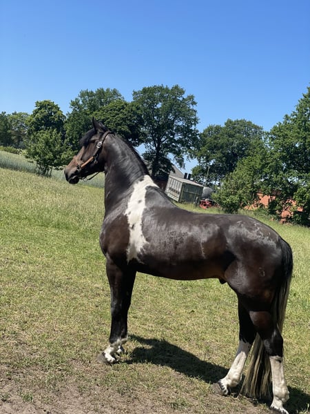 With a heavy heart, I am selling my beautiful Baroque Pinto gelding, 7 years old. He is a very special horse with a lot of presence and charm, now looking for his perfect person. Breed: Baroque Pinto Gender: Gelding Age: 7 years, 16.1 hh Training: Early stages of dressage training Use: Leisure riding, possibly dressage later on Competition experience: None Suitability: Not suitable for beginners or children! He is looking for an experienced, sensitive rider with a calm and clear hand. He is eager to learn, attentive, and very people-oriented. Due to his training level and temperament, he is not a beginner’s horse. A horse that wants to be challenged both physically and mentally – with regular training, he is balanced and enjoys working. A rider with experience, patience, and a gentle touch will gain a loyal leisure partner in him. He shows no vices such as rearing, bucking, or similar! In the field, he rides calmly with other horses and shows no problems there, although he is still at the beginning of his outdoor training and not 100% trail-safe. It is especially important to me that he goes to caring, horse-friendly hands, with plenty of turnout, movement, and appropriate care – a place where he can simply be a horse! No sales to dealers, and he will be sold with a protective contract. Only to the very best hands! If genuinely interested, I look forward to hearing from you. Priority over price!