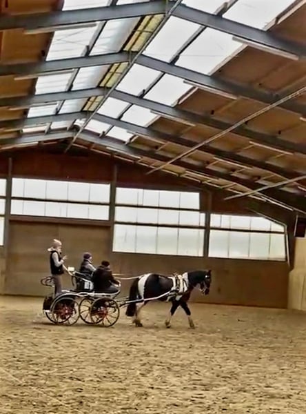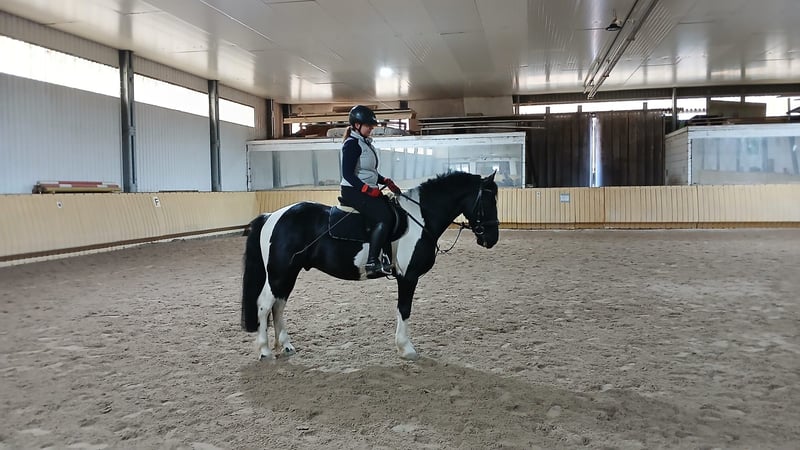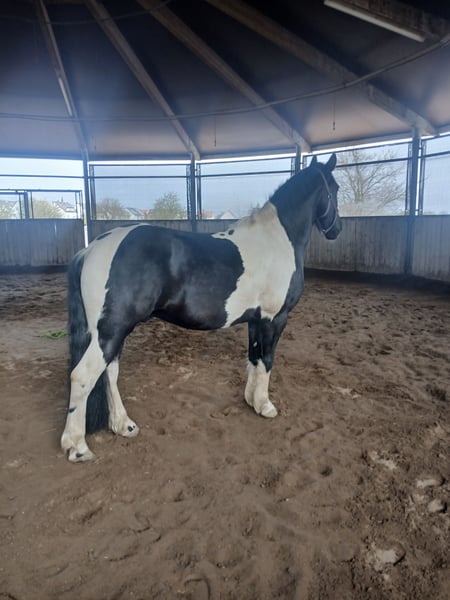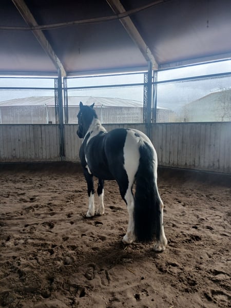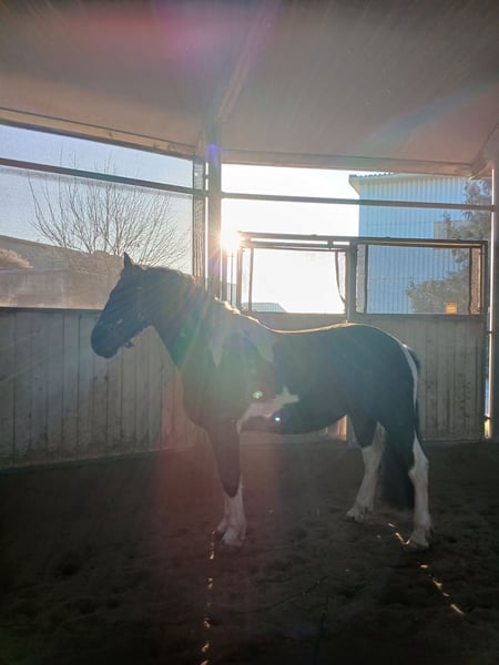 8 jähriger Wallach Typ Barockpinto mit italienischem Pass. Kennt Offenstall und (Paddock-)Box. Geritten in den Grundgangarten (Halle, Platz, Gelände), Doppellonge, Bodenarbeit, wurde auch schon gefahren (nicht bei uns). Teilweise unsicher, aber gut zu überzeugen bzw. händeln - allerdings nur für erfahrene Pferdemenschen. Regelmäßig geimpft & Physio, Zähne kontrolliert, Sattel gecheckt (Englisch und Western) Lässt sich nur mit viel Ruhe satteln, hat Angst. War letztes Jahr für 6 Monate in Beritt, dort hat er das Verhalten nicht gezeigt. Aufsteigen und Reiten unauffällig.