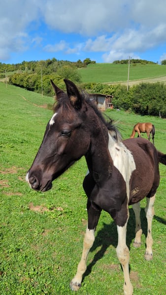 Unsere wunderschöne Azizam besticht nicht nur durch ihre Optik, sondern auch durch ihren traumhaften Charakter. Sie wächst artgerecht mit anderen Fohlen in der Herde auf. Auch ihr Bruder (siehe Bilder) steht zum Verkauf. Azizam ist eine Anpaarung aus einer wunderschönen, super lieben Spanier Stute und dem Traumhengst Santiago (letzte Bilder) . Santiago(volles Papier) ist Mr. Cool 😎 und genau das gibt er auch an seine Nachkommen weiter. Für Azizam stehen einige Türen offen, ob als Freizeitpferd, in der Working Equitation, im Westernbereich oder im Showbereich, sie wird definitiv ihren Weg gehen . Hierfür sucht sie nun noch ihren passenden Zweibeinigen Partner. Azizam wird nur in artgerechte Haltung verkauft und an Menschen mit Pferdeverstand!!! Aktuell zum Winterpreis von 6000€