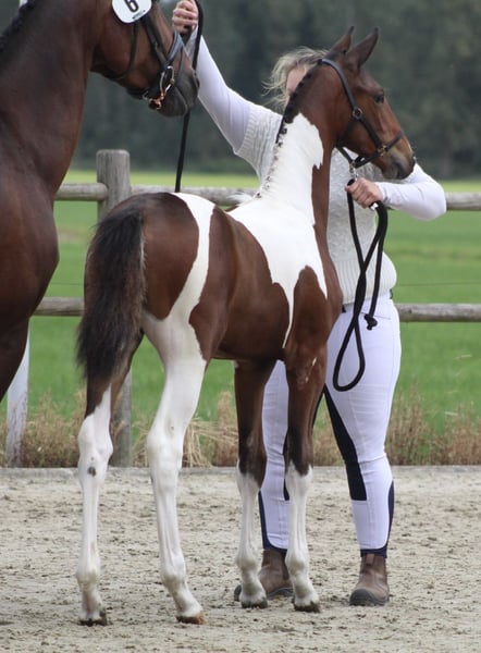 Dopo aver riflettuto a lungo, ho deciso con grande difficoltà di mettere in vendita questa splendida puledra di un anno! Sua madre è una cavalla KWPN di: United x Hierrach! Suo padre è il bellissimo stallone: Homozygote Daimond (ora Z dressage). Bibi, come la chiamiamo qui, non si impressiona facilmente e viene subito da te quando è nel pascolo. È sociale nel gruppo. È abituata al maniscalco, al trailer, ai cani, ai bambini, ecc. Lo scorso anno, durante la selezione, ha ricevuto un bel primo premio e si è classificata terza nella ring del campionato.