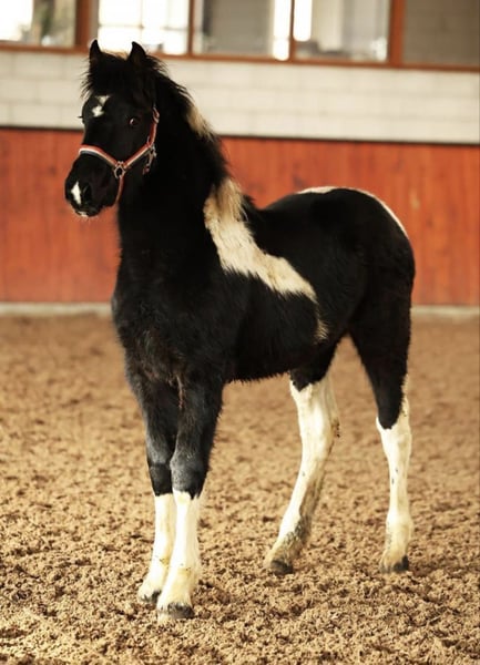 Te koop: Prachtige stamboek Barock Pinto merrie veulen, geboren in augustus 2025. Dit opvallende bonte veulen zal uitstekend geschikt zijn voor dressuur en beschikt over een goede basis en beweging, ideaal voor ruiters die op zoek zijn naar een veelzijdig paard. Een unieke kans om een jonge, veelbelovende dressuurpartner aan te schaffen met een prachtige uitstraling. Ze kent het veulen ABC: kan makkelijk halster af en op, meelopen, gepoetst worden en is in handen bij de hoefsmid. Voor meer informatie en een kennismaking, neem gerust contact met ons op!