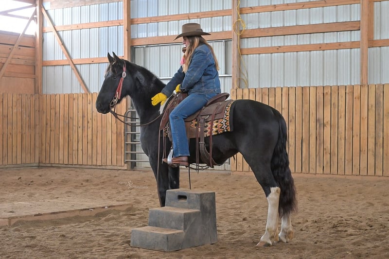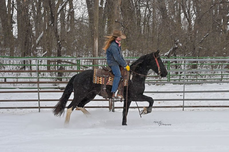 ⚜️𝐓𝐇𝐄 𝓗𝓮𝓻𝓲𝓽𝓪𝓰𝓮 𝐖𝐢𝐧𝐭𝐞𝐫 𝓒𝓵𝓪𝓼𝓼𝓲𝓬⚜️ Happening now thru MONDAY | DECEMBER 29th - Available EXCLUSIVELY on HorseBid's website! For more details and to register visit: www.Horsebid.com CONSIGNOR CONTACT: Jerry Kehoe (Leah Nutt - Agent) Leah: 320-279-7010 LOCATION: Hastings, MN BREED: Baroque Pinto REGISTERED: Yes REGISTERED NAME: Kehoe's Winnie COLOR: Black Tobiano HEIGHT: 14.3 AGE: 2 GENDER: Mare Winnie is a coming 3 year old that has all of the class and style you could ask for. Her breeding is as elegant as she is, 75% Friesian and 25% paint; a BAROQUE PINTO! Registered in the Friesian Heritage Horse and Sporthorse International Registry. Winnie has been started slow and correct, having over 30 days of riding and 6 months of driving. She will walk, trot, and canter both directions with ease. She picks up her leads on cue, and has smooth transitions for her level of training. Winnie collects when asked and moves off of leg pressure as well. She is a free mover that has an absolutely gorgeous extended trot! She stands patiently at a mounting block, rides off quietly, and aims to please with every ride. Winnie has that in your pocket disposition that everyone loves, but she is also very respectful of your space. Winnie is a direct result of our breeding program, and destined for the show pen. We own her mother, and have several of her siblings. She has been with us since birth besides for her time in training. Winnie will excel in an English training program, or make a flashy carriage horse. The opportunities are endless for her! Whether you enjoy the excitement of competing at shows, or want to stroll through central park in a carriage; Winnie has all of the potential to take you there. Winnie is easy to catch, and is the first one to meet you when turned out. She gets along well with other pasture mates. She loads and hauls well, stands for the farrier, and always acts like a lady with no bad habits. Winnie has a very good mind, and has done phenomenal in training. We are proud to offer this sweet mare, and know that you will love her as much as we have. For any additional information, or if you would like to meet Winnie prior to the auction ending, contact Leah (agent) at 320-279-7010.