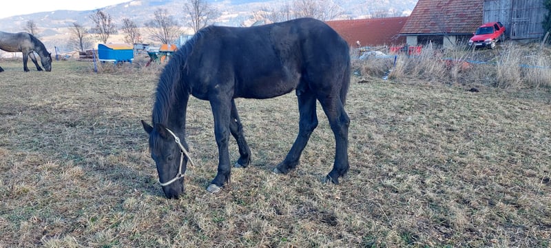 Very sweet young Baroque Pinto stallion. He is expected to grow quite tall, has a beautiful, expressive movement, and is very affectionate. An ideal partner for leisure riding or dressage. When offered for sale, he is accustomed to trailer loading, knows basic foal handling, is vaccinated, regularly dewormed, and is well-behaved when haltered and led. He lives in a mixed herd, is well socialized, and is familiar with dogs, cats, agricultural machinery, and electric fences. Naturally, he has a passport. His dam mare is on the farm. We look forward to welcoming you to meet this lovely colt. Inquiries mentioning "final price" or similar will not be answered.