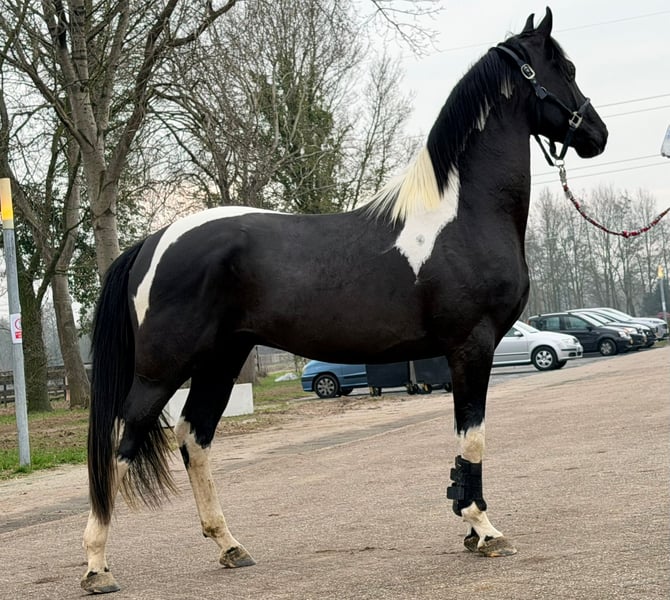 Zum Verkauf steht ein im April 23 geborener Barockpinto mit einer derzeitigen Größe von 160cm. Geschätztes Endmass ca 165cm. Er ist sehr brav an der Hand und bei der Arbeit. Aufgrund seiner guten Qualität steht er derzeit in den Niederlanden zur Körvorbereitung. Besichtigung auf Anfrage möglich.