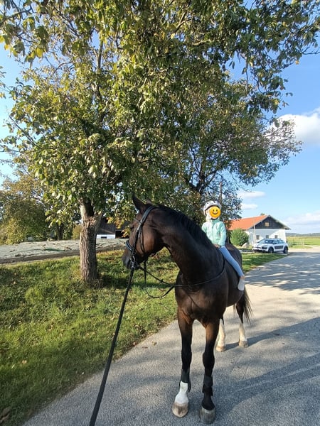 Schweren Herzens suche ich für meinen 14-jährigen Wallach Catch my Liberty (ca. 1,65 m) ein passendes neues Zuhause. Catch ist ein schicker, liebenswerter und zuverlässiger Sportpartner mit klarer Springveranlagung. Er ist vielseitig einsetzbar und macht es einem durch seinen ehrlichen und angenehmen Charakter sehr leicht, ihn ins Herz zu schließen. Sowohl von Erwachsenen als auch von Jugendlichen und Kindern ist er gut zu reiten. Er befindet sich seit über 6 Jahren in meinem Besitz und wurde in dieser Zeit schonend und kontinuierlich an den Turniersport herangeführt. Dabei konnte er schöne Erfolge erzielen und sich in Springprüfungen der Klassen A*, A** sowie L platzieren. In der letzten Saison wurde er aufgrund von Zeitmangel nicht auf Turnieren vorgestellt. Im täglichen Umgang zeigt sich Catch absolut unkompliziert und brav. Auch unter dem Sattel ist er ein echter Schatz. Im Gelände ist er unerschrocken und zuverlässig (kleine Ausnahme: Kühe). Er kennt Ausritte, Schmied und Verladen problemlos. Am Sprung bringt er viel Vermögen und Qualität mit, ist jedoch am Sprung kein reines Anfängerpferd. Abstammung: Vater: Clooney (Springlinie) Gesundheitlich ist zu erwähnen, dass er am Vorderbein eine Stellungsabweichung von ca. 10 Grad aufweist, die ihn bislang in seiner Nutzung nicht eingeschränkt hat. Catch wird nicht aus der Not heraus abgegeben. Mir ist ein passendes, wertschätzendes Zuhause sehr wichtig. Bei ernsthaftem Interesse freue ich mich über eine Nachricht mit Telefonnummer – ich melde mich dann gerne persönlich zurück. Ein Probereiten ist bei ernsthaftem Interesse selbstverständlich möglich. Zubehör wie Springsattel, Dressursattel, Zaumzeug, Winterdecken etc. kann bei Bedarf mit erworben werden. Wichtig: Kein Tausch, keine Reitbeteiligung und keine Zurverfügungstellung.
