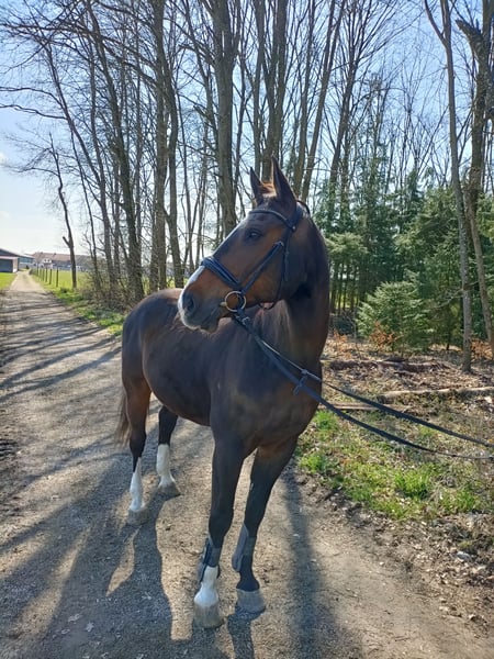 Con mucho pesar, busco un nuevo hogar para mi caballo de 14 años, Catch my Liberty (aproximadamente 1,65 m). Catch es un compañero de deporte elegante, cariñoso y confiable, con una clara predisposición para el salto. Es versátil y, gracias a su carácter honesto y agradable, resulta muy fácil encariñarse con él. Es apto para montar tanto por adultos como por jóvenes y niños. Lleva más de 6 años en mi propiedad y durante este tiempo ha sido entrenado de manera suave y progresiva para la competición. Ha obtenido buenos resultados y ha participado en concursos en las categorías A*, A** y L. La última temporada no fue presentado en concursos debido a falta de tiempo. En el día a día, Catch es muy dócil y tranquilo. Bajo la silla, también es un verdadero tesoro. En el campo, es valiente y fiable (pequeña excepción: vacas). Conoce paseos, el herrador y la carga sin problema. En el salto, posee mucha calidad y talento, aunque no es un caballo ideal para principiantes en esta disciplina. Pedigrí: Padre: Clooney (línea de salto). Desde el punto de vista de salud, cabe mencionar que tiene una desviación de aproximadamente 10 grados en la pata delantera, que hasta ahora no le ha limitado en su uso. Catch no se entrega por necesidad, sino que busco un hogar adecuado y respetuoso. Si estás seriamente interesado, agradecería que me envíes un mensaje con tu número de teléfono; me pondré en contacto contigo personalmente. Por supuesto, es posible realizar una prueba de monta si hay interés real. El equipo como silla de salto, silla de doma, bridas, mantas de invierno, etc., puede adquirirse si se necesita. Importante: No se acepta cambio, participación en la equitación ni préstamo.