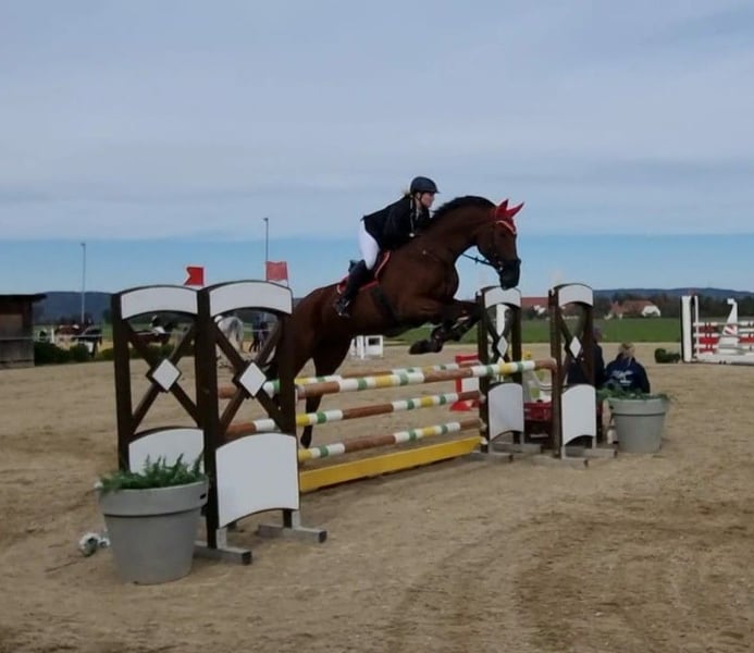 schicker, braver Wallach schweren Herzens nur in absolut gute Hände abzugeben (aus gesundheitlichen Gründen der Reiterin momentan nicht im Training) FranzFerdinand ist eine Seele von Pferd und für jeden Spass zu haben, egal ob für den Freizeit- oder Turnierreiter. Er kennt longieren, Doppellonge, Bodenarbeit, hat auch schon meinen Sohn im Schlitten gezogen, geht ins Wasser, im Springen bis L platziert (er will immer über den Sprung - verweigern kennt er nicht), geht gerne ins Gelände, egal ob alleine oder in der Gruppe, ist Volksfestauszug gegangen. Trotzdem ist er kein reines Anfängerpferd, da er über reichlich Go verfügt und auch mal seine Freude in Form von kleinen Bocksprüngen (nie bösartig) zeigt, kein steigen. Schmiede- und verladefromm (aktuell Barhuf), ebenso beim Tierarzt. Wurde regelmäßig dem Osteopathen vorgestellt, Zähne wurden im Herbst 2024 gemacht, regelmäßig geimpft und entwurmt. FranzFerdinand steht bei mir aktuell im Offenstall mit 2 weiteren Wallachen, er ist herdenverträglich, auch mit Ponys. Ich würde mir ein liebevolles Zuhause im Offenstall oder mit viel Weidegang wünschen. FranzFerdinand ist 14 Jahre alt und 1,80m gross. Standort ist 84130. Aufgrund eines Befundes, der absolut ausgeheilt ist und bis jetzt keine Probleme macht, unter Wert zu verkaufen. Das gesamte Zubehör, kann gegen Aufpreis ebenfalls erworben werden (von der Abschwitzdecke bis zum Sattel alles).