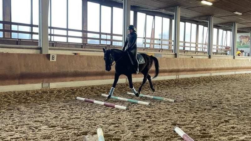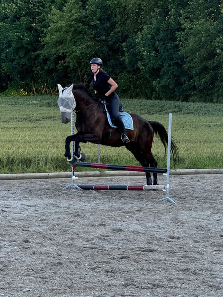 Dino is a 14-year-old Bavarian Warmblood gelding. Due to lack of time, which prevents me from giving him the attention he deserves, I am looking to place Dino in good hands. He has an approximate height of 17.3 hh and is suitable for tall riders, but he can also be ridden comfortably by less experienced or smaller riders. Initially, he may need some time to get used to new people, but he shows no bad habits, aside from some gentle testing. Once settled, he is a reliable partner and a loyal companion. He has been ridden mainly for leisure, with a focus on dressage work, but small jumps and hacking out with other horses are no problem. Dino does not display any vices such as bucking, rearing, or kicking. Currently, he is kept in a box stall with daily turnout and a paddock walk, sharing a paddock with a mare. If you have any further questions, please feel free to contact me. Not a desperate sale, only to suitable, experienced riders!