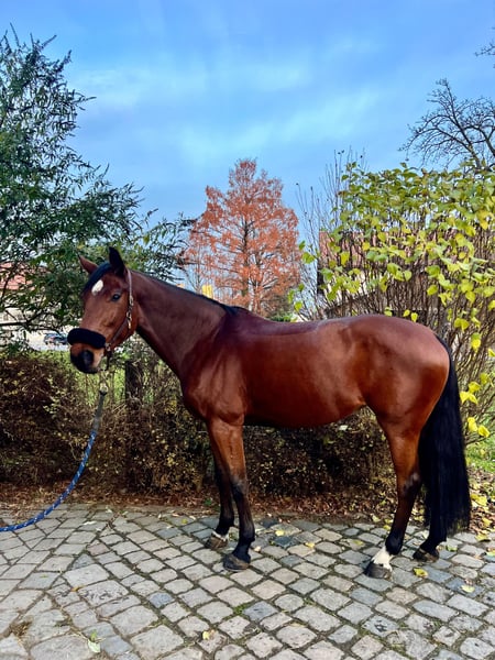 Carlotta is a very blood-type, ambitious mare. She is motivated every day and eager to work. She has a nice pull to the jump, but does not become overly strong. Thanks to her uncomplicated nature, she is ideally suited for amateurs or pony riders transitioning to horses. Despite her go, she is always easy to handle. She has never bucked or reared and is absolutely well-behaved in the field as well. She is by Harley VDL out of Grand Coeur. Her mother was a multiple winner in show jumping at 140/145 cm and placed up to 150 cm. She has inherited her ambition and excellent attitude towards sport from her lineage. Carlotta has over 40 placings in show jumping classes from 125 to 140 cm, including 15 first places and 12 second places in M*/M** level competitions. Please feel free to contact me for more information personally at 0171 2233072.