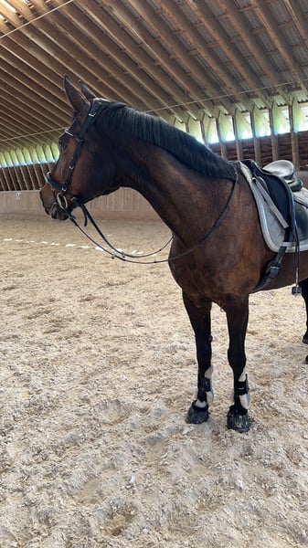 Wunderschöne 15-iährige Stute zu verkaufen Hauptdisziplin: Dressur und Freizeit Duffv ist eine 15-iährige fein zu reitende Bayer Stute. Sie ist mit hervorragenden GGA ausgestattet. Duffy ist mit genug Go ausgestattet und wurde als Dressur- und Freizeitpferd geritten. Daher ist sie nicht für Anfänger geeignet. Sie wird nur schweren Herzens verkauft. da wir ihr leider nicht mehr gerecht werden aufgrund von familiären Änderungen. Wir geben Sie nur in liebevolle Hände ab, da Duffv ein sehr sensibles Pferd ist! Schön wäre es, wenn Sie zu jemanden kommt, der mit ihr zusammen wachsen möchte und sie wieder ein vollwertiges Familienmitglied wird. Platz vor Preis! Kein Reittourismus! Sie ist gesund und voll reitbar. Schmiede- und verladefromm Sie geht sowohl alleine als auch in der Gruppe ins Gelände. Wir hatten keine Ambitionen zur Dressurarbeit daher. würden wir es lieber sehen, wenn man mit ihr aus reinem Spaß an der Freude freizeitmässig reitet. Auf Wunsch haben wir auch einen neuen Sattel und weiteres zu verkaufen.
