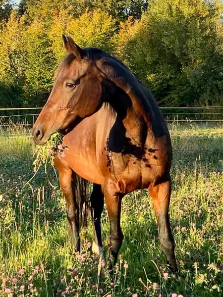 Nach langem Hin und Her und einer schweren Entscheidung möchte ich meine, gerade 19 Jahre alt gewordene, Stute als Freizeitpferd und nur in beste Hände abgeben. Auf dem Platz und auf der Koppel gebisslos geritten. Im Gelände wurde sie mit Gebiss geritten Kann im Gelände alleine und in der Gruppe geritten werden. Braucht im Gelände und im Galopp einen sicheren Reiter. Ist kein Pferd für Anfänger. Koppt beim Satteln etwas! Vom Boden aus gearbeitet sowohl im Horsemanchip als in der Freiarbeit, Zirensik (Lektionen wie Spanischer Gruß, Liegen, Kopf schüttel, Flemmen,...) und die anfänge der Handarbeit (Seitengänge, übertreten an der Hand) Sie einen tollen Charakter und lernt schnell, ist verschmust und arbeitswillig. Braucht eine Person der ihr Grenzen zeigt und Sicherheit gibt. Schmiedefromm und beim Tierarzt lieb. Steht seit 6 Jahren Barhuf, wurde beim Vorbesitzer beschlagen. Steht im Sommer auf der Koppel und im Winter auf dem Paddock. Sie ist herdenverträglich und steht ganzjährig in der Herde im mittleren Rang Aktuell nicht trainiert müsste neu antrainiert werden! Bilder sind schon älter, 2-3 Jahre alt. Aktuelle Bilder können bei Interesse gerne geschickt werden. Nur in erfahrene Hände abzugeben. Bitte nur bei ernstgemeintem Interesse melden! AKU kann gerne gemacht werden. Equipment (Halfter, Führstrick, Trense und Sattel mit Schabracke) kann gerne dazu erworben werden bzw. Ist VB. Für mich gilt Platz vor Preis, da sie sehr zutraulich und mir ans Herz gewachsen ist. Verkaufen tue ich sie, da ich zuwenig Koppeln und Futter besitze. Zucht ist außerdem ausgeschlossen!