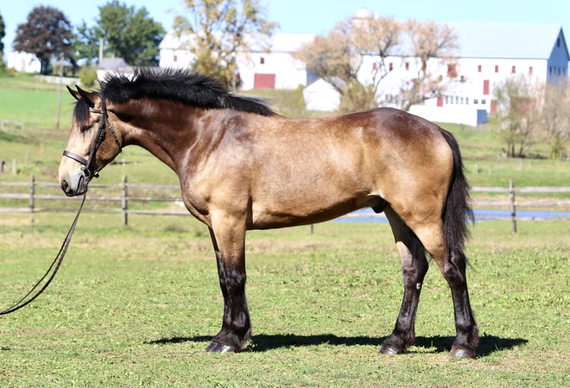 ⚜️𝐓𝐇𝐄 𝐅𝐀𝐋𝐋 𝐇𝐄𝐑𝐈𝐓𝐀𝐆𝐄 𝐂𝐋𝐀𝐒𝐒𝐈𝐂⚜️ Happening now thru MONDAY | NOVEMBER 3rd - Available EXCLUSIVELY on HorseBid's website! For more details and to register visit: www.Horsebid.com CONSIGNOR CONTACT: CM Farms 717-875-2061 LOCATION: Gap, PA BREED: Belgian/QH X REGISTERED: No COLOR: Sooty Buckskin HEIGHT: 17 AGE: 4 GENDER: Gelding ✨ Meet Valor! ✨ He quite literally stops people in their tracks. From veterinarians to professional trainers, everyone who lays eyes on Valor has the same reaction: pure amazement. His striking, one-of-a-kind color, massive build, and soft, kind eye make him unforgettable. Standing a true 17 hands, this 4-year-old Belgian × Quarter Horse cross gelding has a presence that’s nothing short of breathtaking. But Valor isn’t just a pretty face. Beneath that impressive frame is one of the kindest, safest, and most dependable young horses we’ve ever had. He’s the real deal—quiet, curious, and honest. He’s truly been one of the highlights of our year, and it’s easy to see why. Valor rides both English and Western, is beautifully broke to drive, and has been lightly introduced to jumping. He’s the kind that makes you proud every time you pull him out—steady, dependable, and always eager to please. 🐴 Under Saddle Under saddle, Valor is everything you want in a horse. He’s soft in the bridle, responsive off the leg, and naturally balanced in all three gaits. His walk, trot, and canter are smooth, comfortable, and easy to sit. He’ll go on a loose rein or in light contact, happily adjusting to his rider’s comfort level. He’s been ridden by all types of riders—from confident kids to adult beginners—and he’s the same every time. Valor is patient, forgiving, and always tries to do the right thing. He’s been started over small fences and shows quiet willingness and curiosity. He doesn’t get nervous or rush—he simply approaches new things with a calm, steady mind. With his great attitude, he’ll continue to develop nicely wherever his new person wants to take him, whether that’s small jumps, trail obstacles, or light schooling work. 🌳 On the Trail Valor shines on the trail. He’s confident, sure-footed, and happy to lead or follow. He’s crossed rivers, bridges, and fields, and has been around cars, tractors, and wildlife without a single spook. He loves being out and about, ears forward and relaxed. Whether you’re out alone or in a group, Valor makes every ride enjoyable. He’s the one you can throw a beginner on and know they’ll come back grinning. 🛞 In Harness Valor is also beautifully broke to drive—both single and double. He’s been used for events, light farm work, and pleasure driving. He stands quietly to hitch, moves off smoothly, and is 100% traffic safe. He’s steady, patient, and professional in every situation. 🏠 In the Barn In the barn, Valor is an absolute sweetheart. He’s respectful, calm, and has that puppy-dog personality everyone loves. He stands quietly to groom, bathe, clip, or tack, and genuinely enjoys attention. He’s wonderful for the farrier and vet (and they all comment on how good he looks), loads and unloads quietly, and hauls without a fuss. He’s polite for barn staff, turns out well with others, and is safe for kids or anyone to handle. 💛 The Whole Package Valor truly has it all—looks, brains, and heart. He’s the rare kind of horse that catches your eye from across the field, then completely wins you over with his temperament. Whether you’re looking for a dependable family horse, a trustworthy trail partner, a classy carriage horse, or just a gentle, beautiful gelding to enjoy every day—Valor checks every box. He’s one of those once-in-a-year horses—steady, kind, and absolutely stunning. Valor is, without question, one of our highlights of the year, and whoever ends up with him will be one very lucky person. 💫