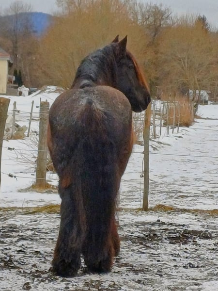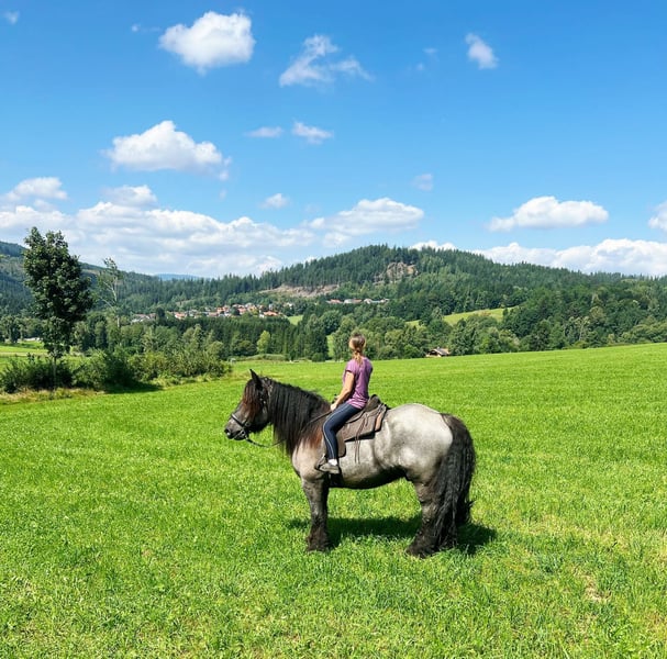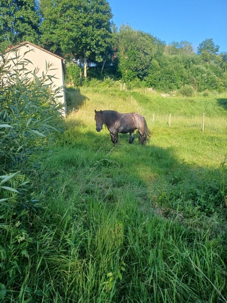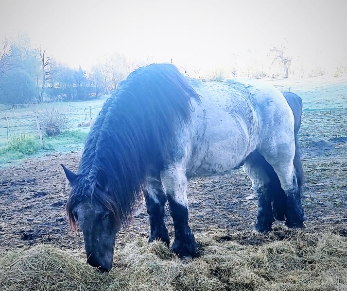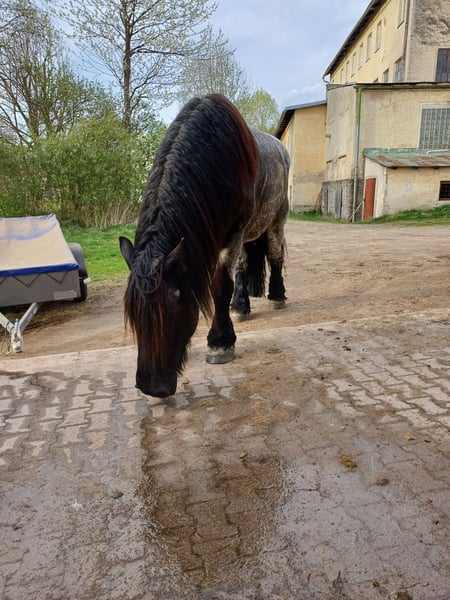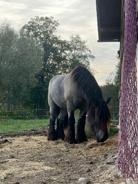 Über 1 Tonne pure Kaltblutpower, sanfter Riese mit viel go! - regelmäßig geimpft - brav beim Schmied (läuft barhuf) - geländesicher (wird nur im Gelände geritten, zu zweit oder alleine) - kennt Autos, Lastwagen, Kutschen, Traktoren, Kühe, Hunde, Kinder etc. - wird ausschließlich durch Stimme geritten - Herdenverträglich - unglaublich verschmust - auch bei der Bodenarbeit immer motiviert Wer ein sportliches, motiviertes Kaltblut sucht ist hier genau richtig. Hades deckt aufgrund seiner Größe und Statur auch schwere und größere Reiter sehr gut ab. Er braucht einen sehr feinen/klaren Reiter und eignet sich somit nicht als reines Anfängerpferd!