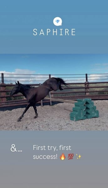 SAPHIRE Bellissima pony ONC • 6 anni • 148 cm • Dotata di ferrature • Documenti belgi Una pony volenterosa, un po’ verde ma mai cattiva. Facile da gestire quotidianamente, sarà adatta a un cavaliere con un po’ di esperienza, non un principiante assoluto, ma non serve essere professionisti 😉 In lavoro: * In libertà, ottimo salto, salta con forza e stile * Sotto la sella, basi di dressage acquisite, affronta un percorso di ostacoli di 70 cm (ha già saltato qualche barra più alta a casa) * Da completare nella formazione, ma ha un vero potenziale per progredire rapidamente con qualcuno dolce e coerente. Potenziale di 110 cm a lungo termine. All’esterno: Una compagna di passeggiate affidabile! Adora farlo, passa ovunque, da sola o in gruppo, calma, riflessiva e piacevole. In branco, è coraggiosa, piuttosto sottomessa e rispetta perfettamente le recinzioni. Trasporto & cure: Facilmente monta su furgone o camion, molto tranquilla durante tutte le cure. (Pulizia, toelettatura, doccia, ferratura, ... ) Una pony sana, affettuosa e piena di futuro, pronta a evolversi con il suo prossimo cavaliere ❤️ Il prezzo potrà variare nel tempo e in base al lavoro svolto. ✅ Aggiornata con vaccini, sverminazioni, cure dentistiche e ferratura. 📍 Belgio Whatsapp: 0032479481088