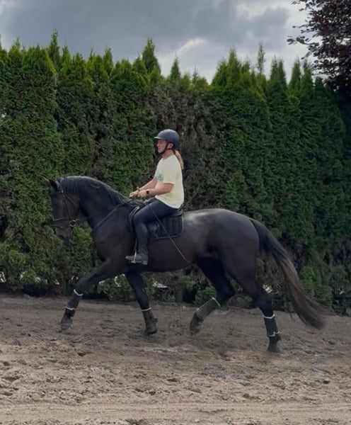 Diacontini is een mooie zelfgefokte 4j. ruin. 1,70m DIACONTINUS X SIR LUI. Hij is afgelopen jaar zadelmak gemaakt en heeft over de winter terug pauze gekregen, kan nu opgenomen worden en verder door gereden Stap, draf, galop, van hand veranderen, gr. volte, slangevolte zijn geen probleem. Het is een paard met kwaliteit. Braaf in omgang, smid en vervoer. Hij leert heel snel en werkt graag. RX-fotos zijn volledig in orde. Wij zelf hadden een halfbroer van hem, die heel goed gesprongen heeft (als hij 6j. oud was, was 1.35m geen probleem) en ook heeft hij dressuur gelopen. Liep de FEI proeven boven de 80% en als 8j. liep hij al Prix St. Georges. Dus wij zijn echt overtuigd van deze afstamming. Deze zijn zowel voor dressuur, springen alsook eventing geschikt. Hij is zeker een heel interessant paard voor de sport en daarbij heeft hij de extra looks ;-) Aarzel niet om ons te contacteren voor meer info. VP: 16000€
