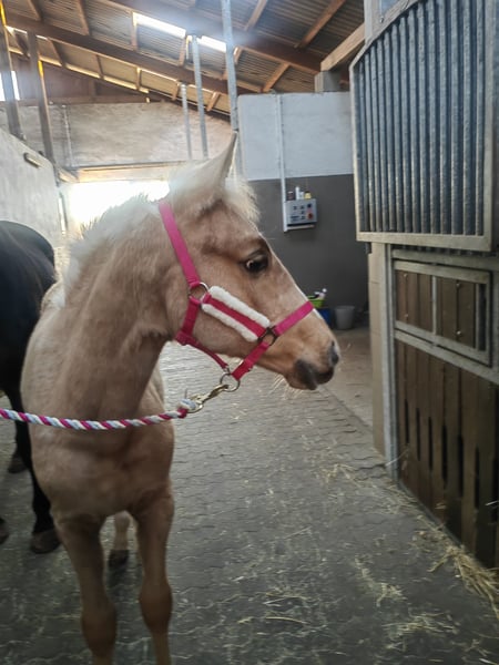 Hier gibt es nicht nur eine wunderschöne Palominofarbe, sondern auch beste Genetik. Elsa präsentiert sich als sehr korrektes und mutiges Fohlen mit viel Kraft in der Hinterhand und einem harmonischen Exterieur. Sie hat viel Energie, ist aber sehr umgänglich. Lässt sich brav halftern und führen, gibt Hufe und lässt sich überall anfassen, einsprühen, etc. Ideales Sportpferd für einen ambitionierten und versierten Reiter/Reiterin in der Vielseitigkeit oder im Springsport. Endmaß sollte bei ca. 1,66m liegen. In Premium-Aufzucht mit hochwertigem Futter, regelmäßigem Schmied und täglichem Weidegang seit Geburt. Kann dort auch verbleiben, falls ein Aufzuchtplatz benötigt wird. Nur aufgrund persönlicher Umstände abzugeben. Platz vor Preis, sportliche Förderung steht im Vordergrund. Bei entsprechenden Referenzen bin ich bereit entgegenzukommen. ------------------------------------------------------------------------------------------------------------------ Bereit für einen Exkurs in ein Leistungspedigree? Der Vater Vanilla Ice de Tamise, ein goldgelber Palomino, ist ein Junghengst und Neuzugang im berühmten belgische Gestüt Stal de Muze. Er wurde letzten Winter schonend angeritten, hat die Belgian Stallion Competition (Springen) absolviert und wird nun für eine Karriere als Vielseitigkeitspferd vorbereitet. Vanilla Ice ist charakterlich einwandfrei und extrem rittig. In seinem Pedigree finden sich nicht nur Stars aus dem S-Springparcours wie Kasanova de la Pomme, Bamako de Muze und Darco, sowie der selbst bis 1,40m erfolgreiche Falbe Cream on Top, sondern auch mütterlicherseits echte Highlights. Mutter Lagune van't Verahof lieferte neben Popeye de Tamise (1,50m) auch bereits Olympic de Muze (4* Karin Donckers) und Ragdoll de Tamise (3* Wouter de Cleene). Großmutter Southern Queen xx ist vor allem bekannt für Ihre Nachkommen Fletcha Van't Verahof (4* Legende von Karin Donckers), Heras van't Verahof (1,60m) und Leipheimer van't Verahof (4*, gekört und Olympiapferd von Karin Donckers). Genetisch und auch im echten Leben ein Hengst der begeistert. Die Mutter von Elsa ist im Hannoveraner Hauptstutbuch eingetragen inkl. Freispringen. Sie verfügt über raumgreifende Grundgangarten, fantastische Rittigkeit und eine sehr saubere Springtechnik (Technik 8,0). Durch einen Anhängerunfall mit Teilabriss des Nackenbandes ist sie leider nicht im Sport gelaufen. Muttervater Viscount gilt als sicherer Doppelvererber. Er ist väterlicherseits ein Halbbruder zu Nadine Marzahls viel zu früh verstorbener Valentine. Er selbst hat Nachkommen in allen Disziplinen bis Klasse S. In der VS u.a. Viscount Victor (5* Tim Price), Venezuela (4* Emily Grace), Very Special (4* Brandon Schäfer-Gehrdau), Vidalgo (3* Kevin McNab), Viscina (3* Felix Vogg), Valetta (3* Jörn Warner), und viele mehr. Die Großmutter war nach einem späten Einstieg selbst im Sport unterwegs (mangels passendem Reiter nur bis 1,30m). Sie ist eine der letzten noch lebenden und in Deutschland verbliebenen direkten Mytens xx Stuten und erfreut sich mit 23 bester Gesundheit. Mytens xx gilt als eine Legende der Vollblüter in der Warmblutzucht. Er selbst ist ein Sohn eines Weltrekordpferdes und wurde als Jährling für 995.000 USD nach England verkauft, gewann dort Rennen und wechselte dann in den Springsport, wo er bis in die schwere Klasse erfolgreich war. Mytens lieferte Sportpferde für alle Disziplinen, u.a. die Derby-Sieger Watermill Fourth xx und Watermill Seven xx, viele S-Springpferde wie Hamar (gek. USA), Haydn (gek. SWE), Helibantos, Hytens (gek.), Mullins (Tjark Nagel), Joint Venture (JAP) und viele mehr, sowie in der Vielseitigkeit My Win (gek., 4* Lazlo Egyed HUN), Mighty Magic (gek., 3* Andreas Dibowski), Irco B/Igeret (gek. 3* Bor Schaller HUN) und weitere. Hier findet sich außerdem der Doppelvererber Gambler's Cup xx eingesetzt auf dem ostpreußischen Stutenstamm (O184 A Hoffmann Motitten). Der Stamm ist ein kleines Juwel, neben der Hannoveraner Stute des Jahres 2009 brachte er zudem einige gekörte Hengste, sowie etliche sporterfolgreiche Pferde. Dazu zählen u.a. die S-Springpferde Lantinus Z (Olympiade Springen), Winnie H (Vollschwester zu Wilthy H), Sissi, Ciky Caloa, Salamander, etc. Sowie die S-Dressurpferde Primadonna, Wilwaukee, Al Pacino, etc. Eine Kombination aus dem eisenharten Blut der Ostpreußen, mit der Vielseitigkeit der der alten Hannoveranerlinien und eine guten Portion sportgeprüften Vollblütern.