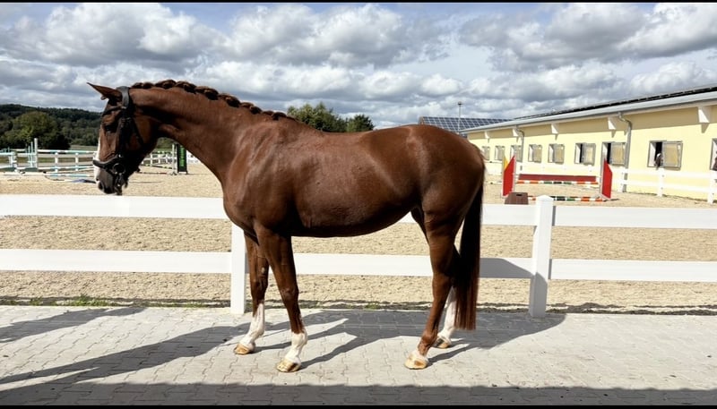 6-jährige Stute mit Vermögen und Vielseitigkeit zu verkaufen Zum Verkauf steht eine talentierte, 6-jährige Stute mit einem Stockmaß von ca. 1,62 m. Abstammung: Diamant de Semilly x Landgraf I. Die Stute überzeugt durch ihre Arbeitsfreude und ihr ausgeglichenes Wesen. Sie ist bereits erfolgreich auf Turnieren bis Springpferde A** platziert und zeigt dabei viel Vermögen sowie eine sehr gute Einstellung zum Sport. Auch im Gelände ist sie einsetzbar: Sie geht allein und brav in der Gruppe ins Gelände und springt souverän Geländehindernisse – somit ist sie auch hochinteressant für die Vielseitigkeit. Weitere Eigenschaften: • herdentauglich • barhuf (kennt auch Eisen) • regelmäßig geimpft • Physiotherapie sowie Zahnkontrollen wurden immer durchgeführt • Brav mit Hunden • Brav im Umgang mit Kindern Eine vielseitige, unkomplizierte Stute mit Potenzial für Sport und Freizeit. Preis: 19.500 € VB Tüv: kann gerne gemacht werden! Bei Interesse gerne melden!