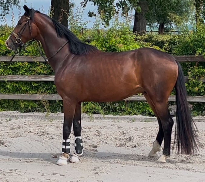 Mooie bruine dressuurhengst ( kan gecastreerd worden) 3 goede gangen Moeder komt uit heel goede sportstadion met wk en high level sportpaarden Idem voor vaderlijn Interessant voor sport of hengstenkeuring